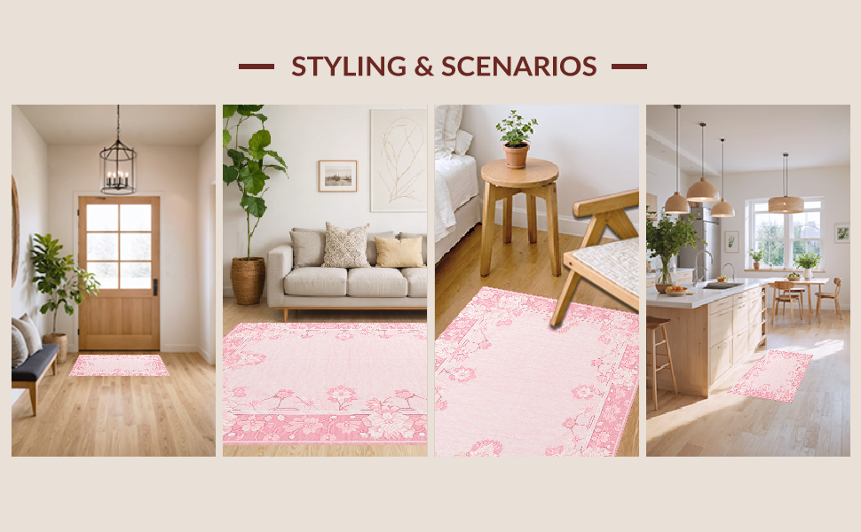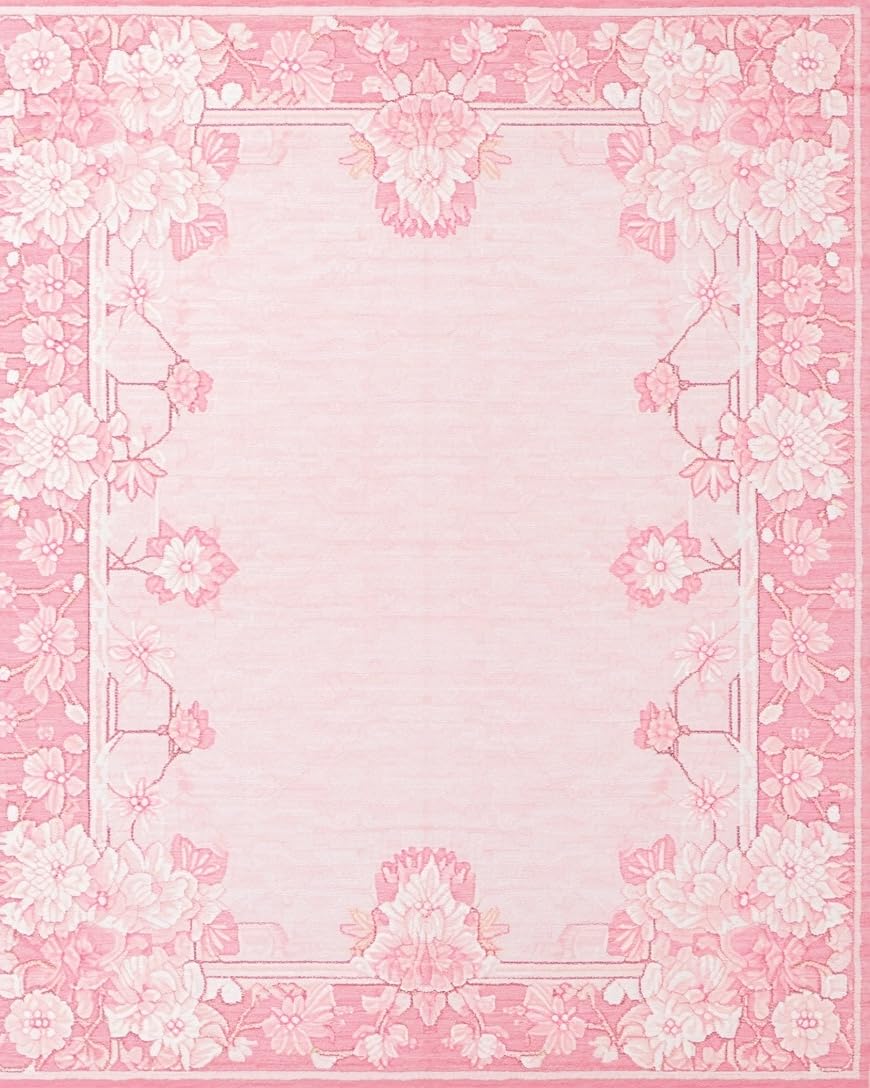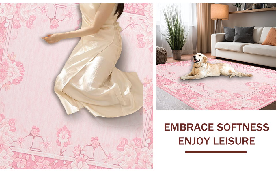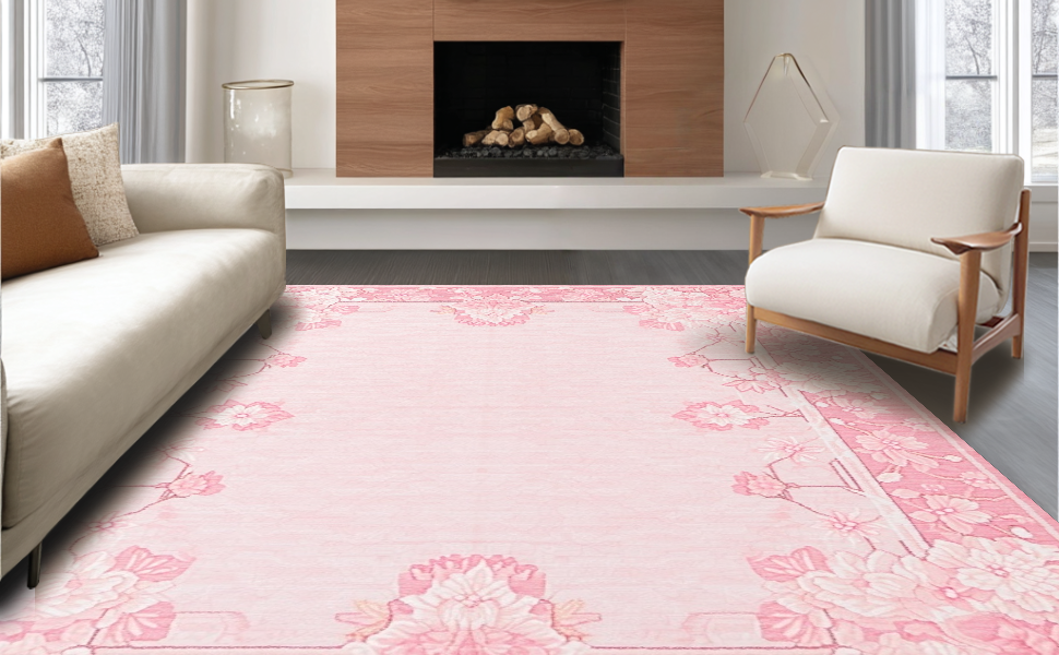 Ultra Soft Area Rug, Non Slip, Stain Resistant, Washable Area Rugs for Living Room, Bedroom, Playful Youthful Geometric Layering(Pink) Overview: