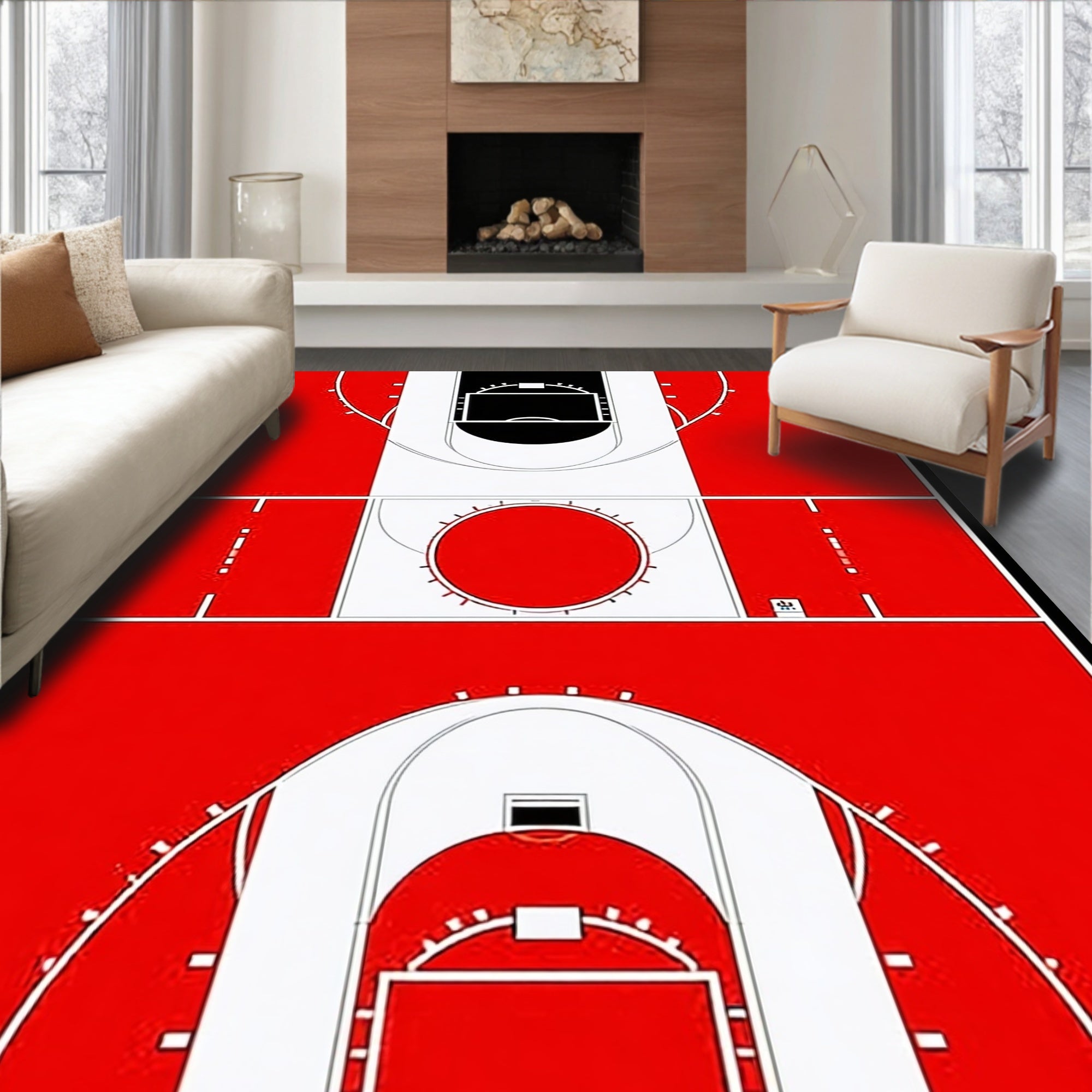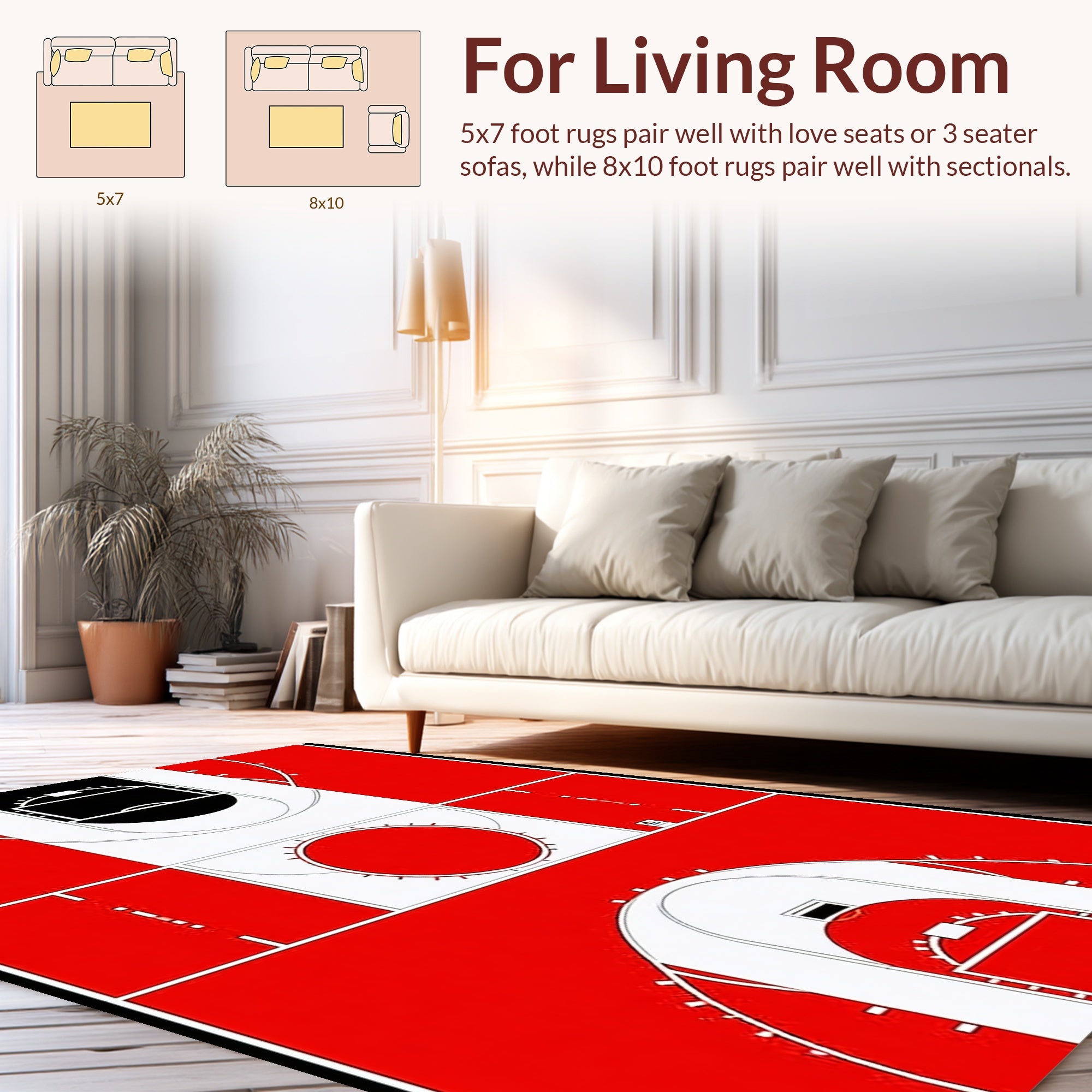 Flatwoven High Traffic Area Rug, Playful Youthful Sporty, Non Slip, Stain Resistant, Washable Area Rugs for Living Room, Bedroom (Red) Overview: