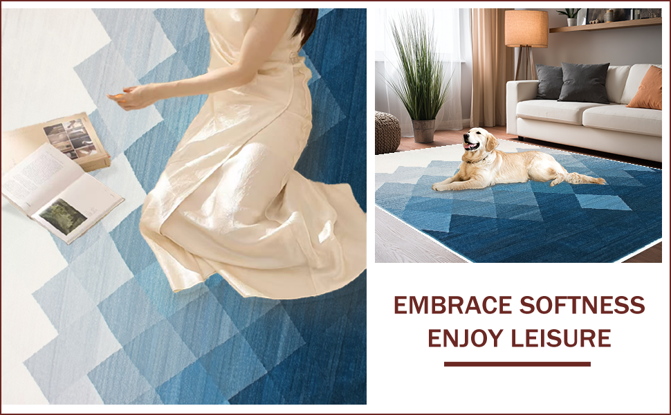 Ultra Soft Area Rug, Non Slip, Stain Resistant, Washable Area Rugs for Living Room, Bedroom, Plush Aesthetic Home Decor Non-Shedding Carpet(Blue) Overview: