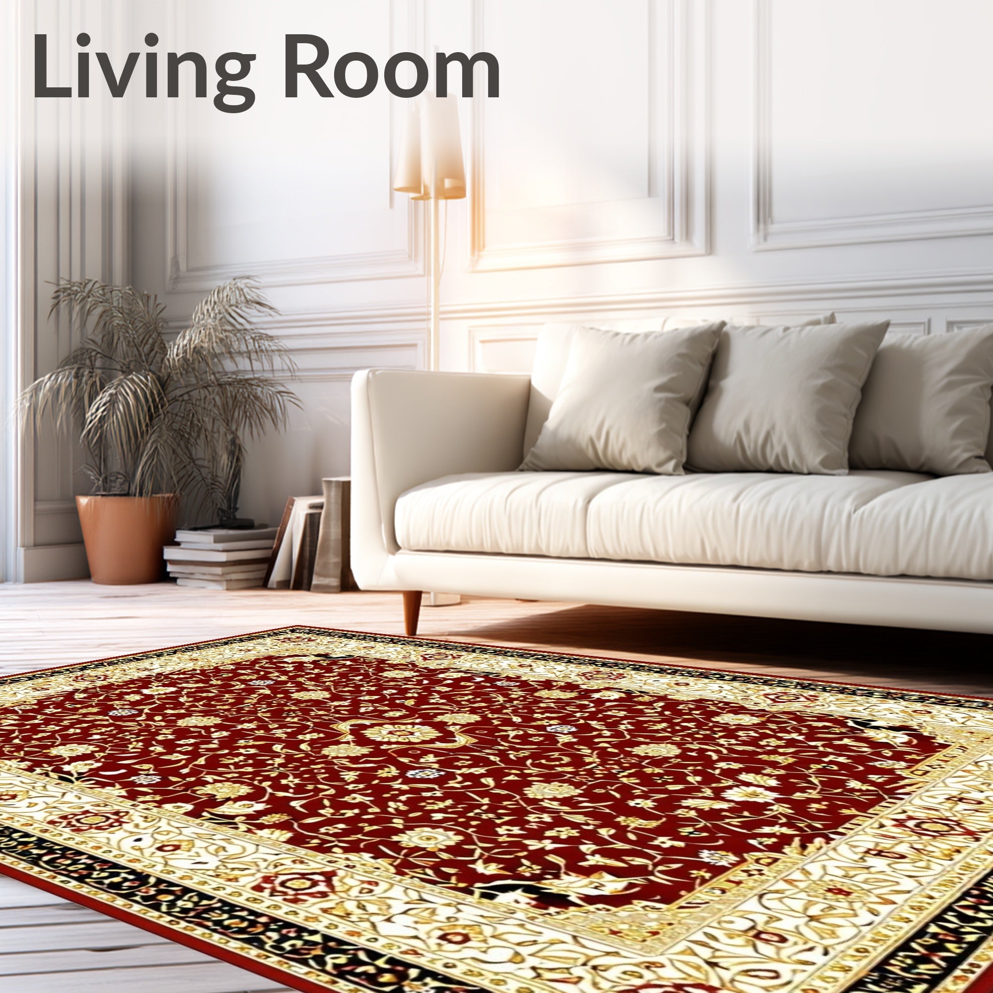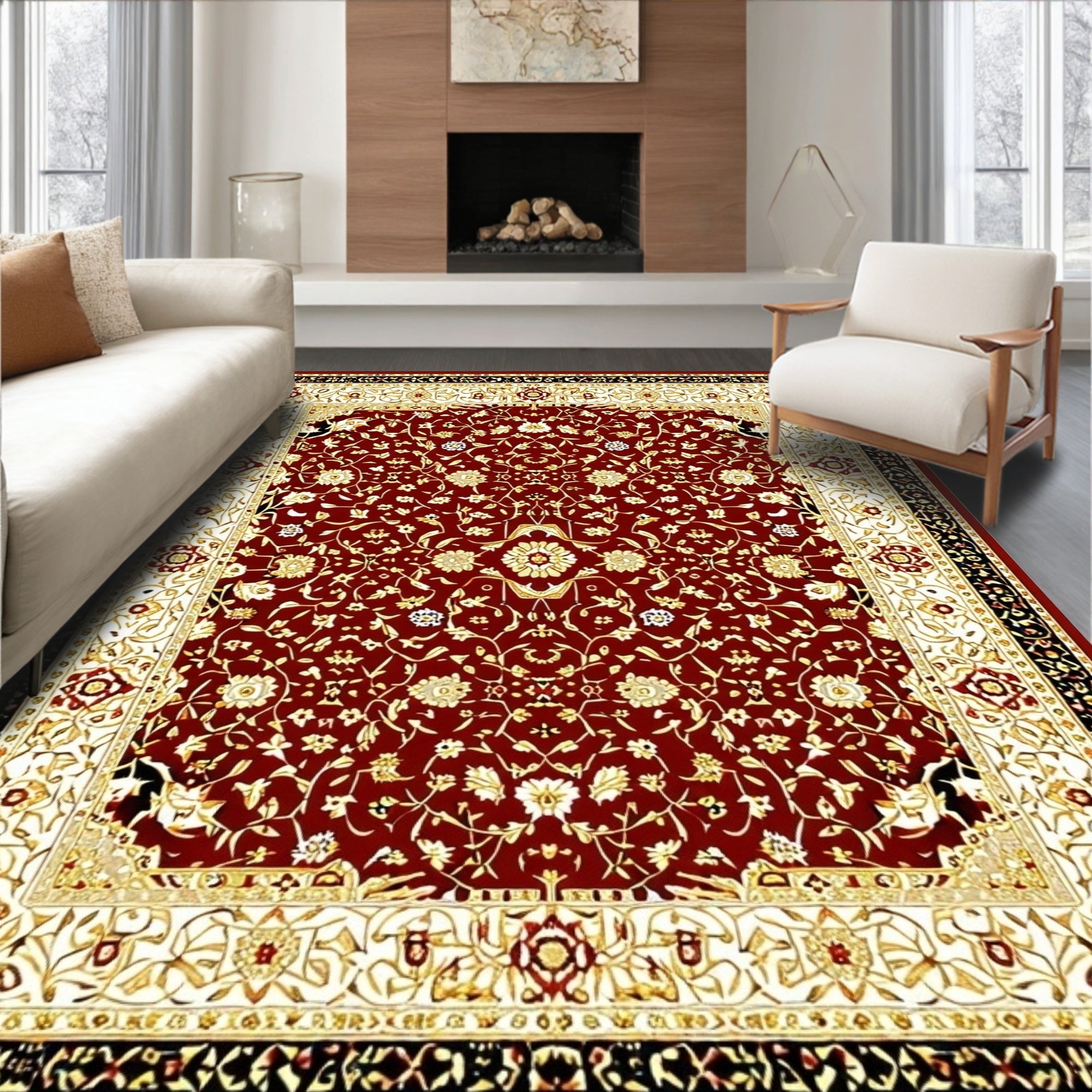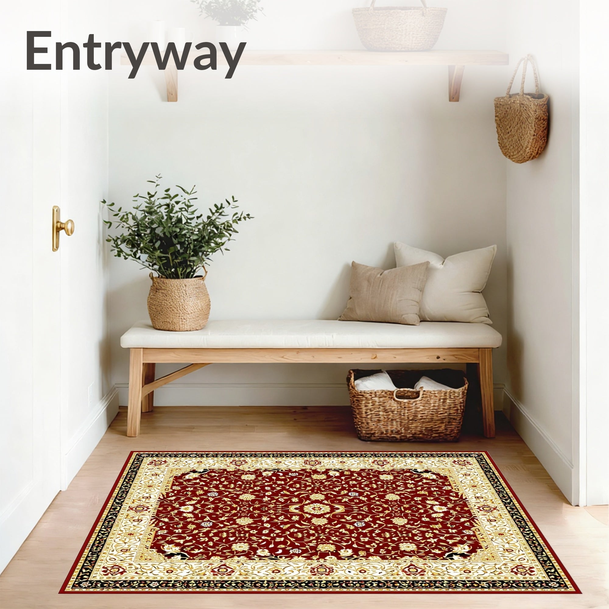 Flatwoven High Traffic Area Rug, Plush with Floral Motifs, Non Slip, Stain Resistant, Washable Area Rugs for Living Room, Bedroom (Red) Overview: