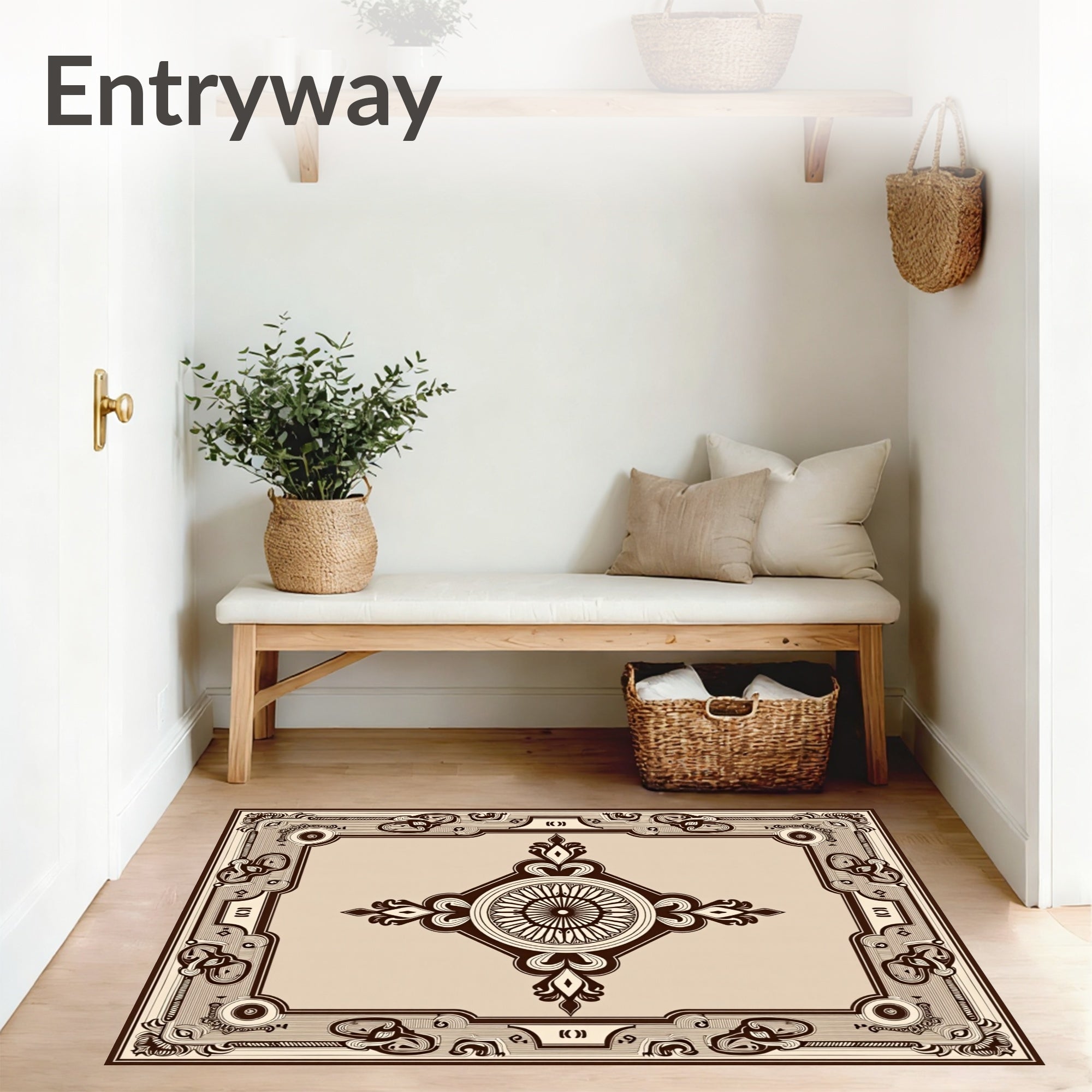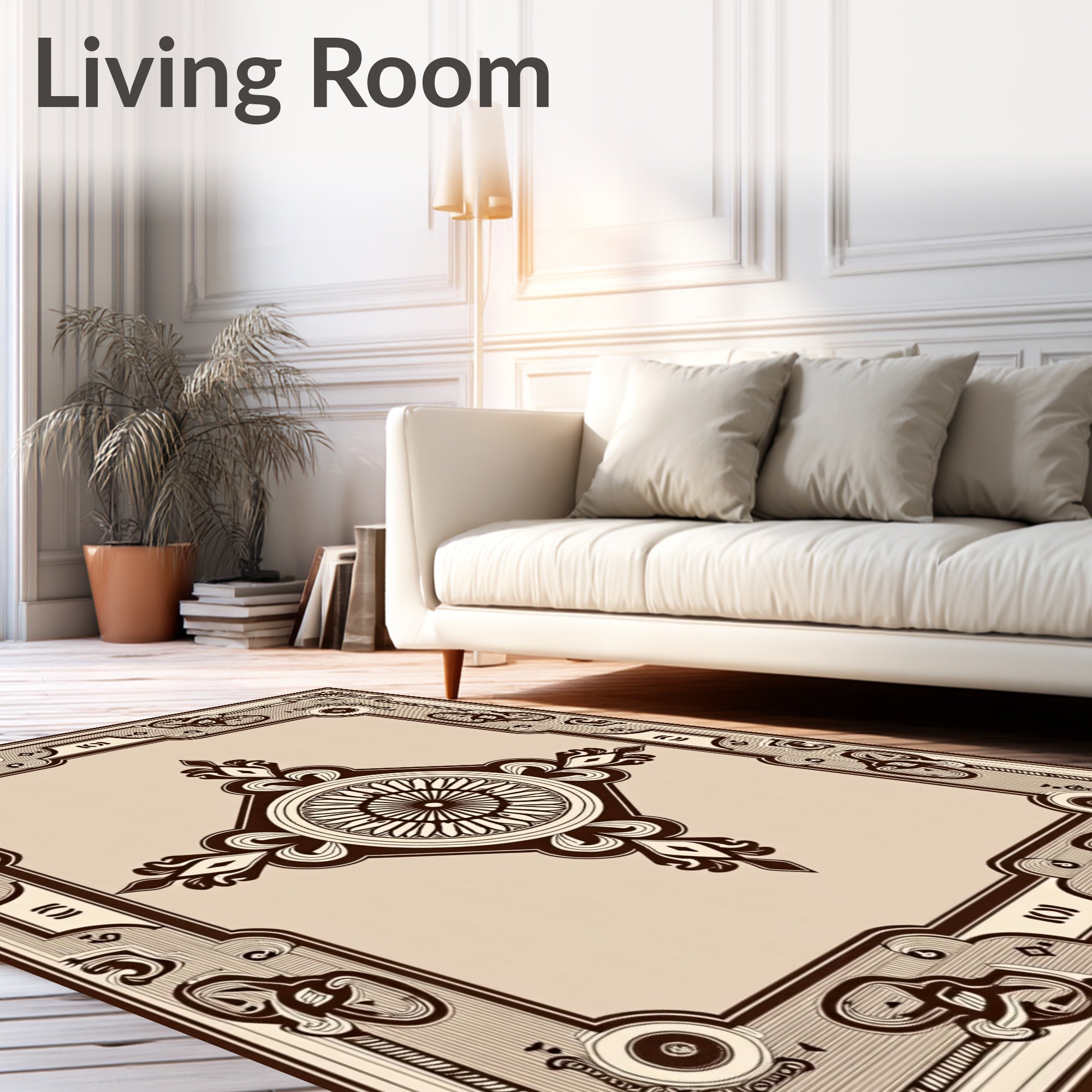 Ultra Soft Area Rug, Non Slip, Stain Resistant, Washable Area Rugs for Living Room, Bedroom, Plush Octagonal Medallion Contemporary Pile(Beige) Overview: