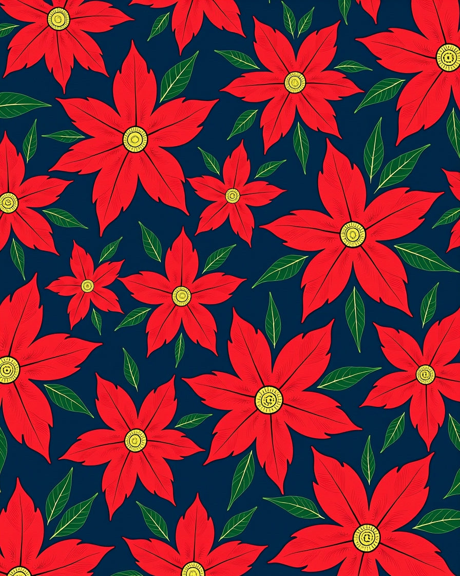 Poinsettia Bloom Botanical Print with Seasonal Flower Arrangements(Red)