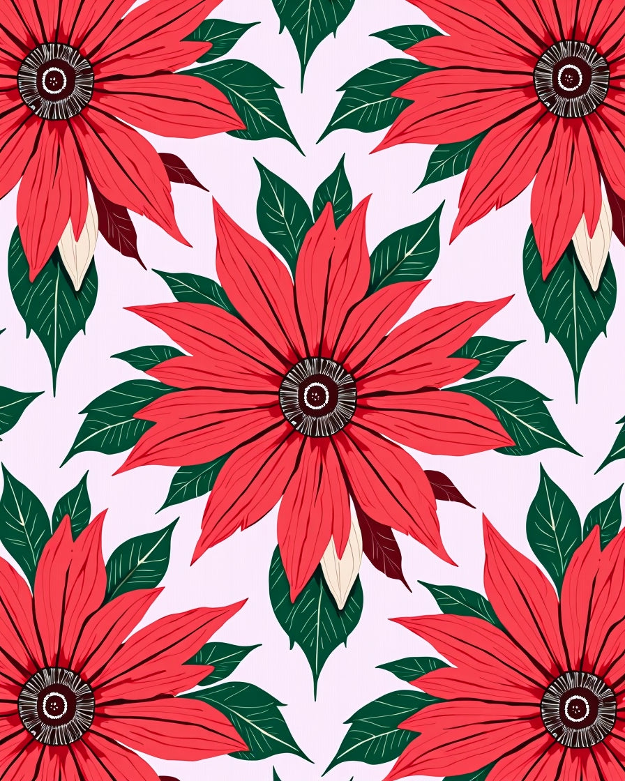 Poinsettia Bloom Botanical Print Yuletide Textile Design(Red)