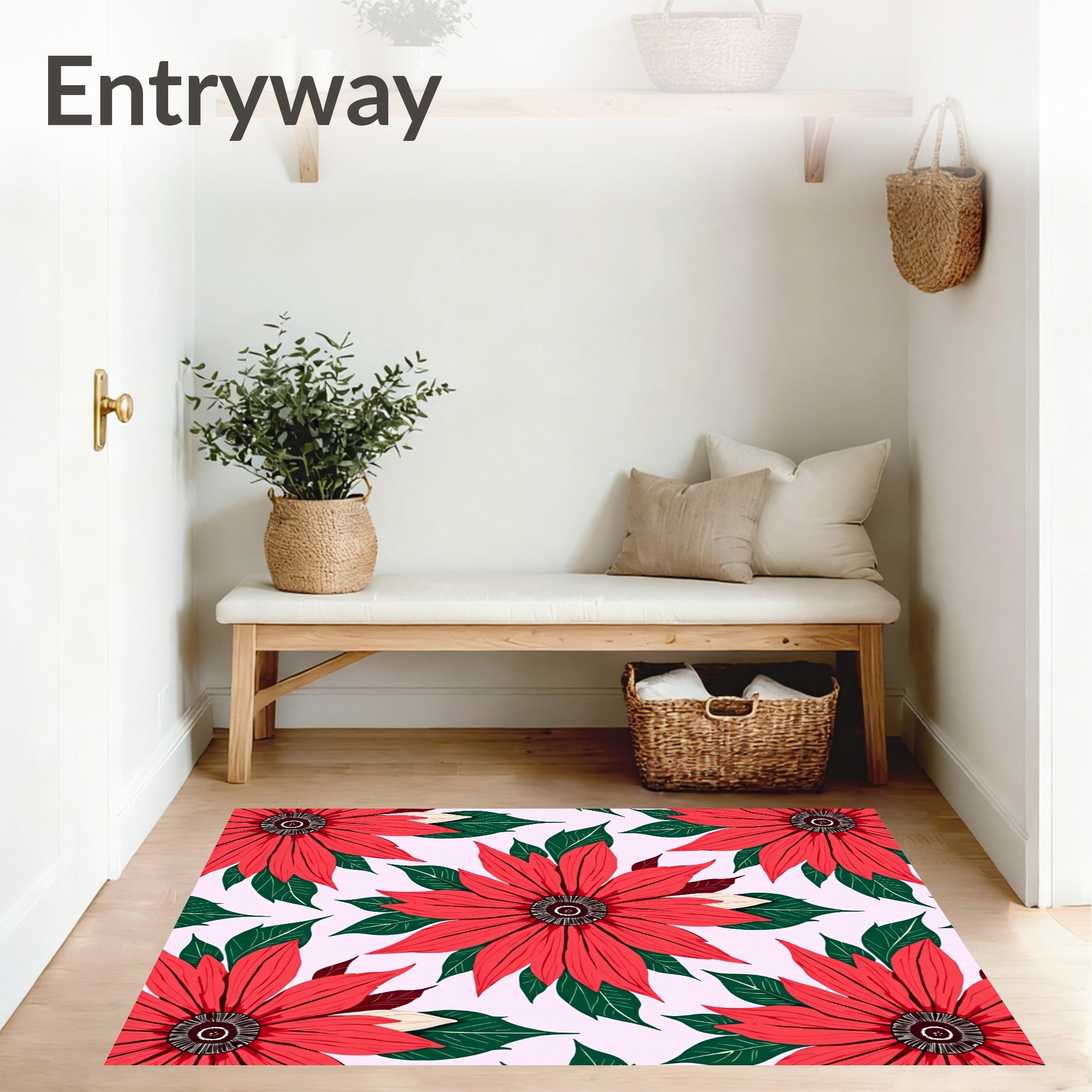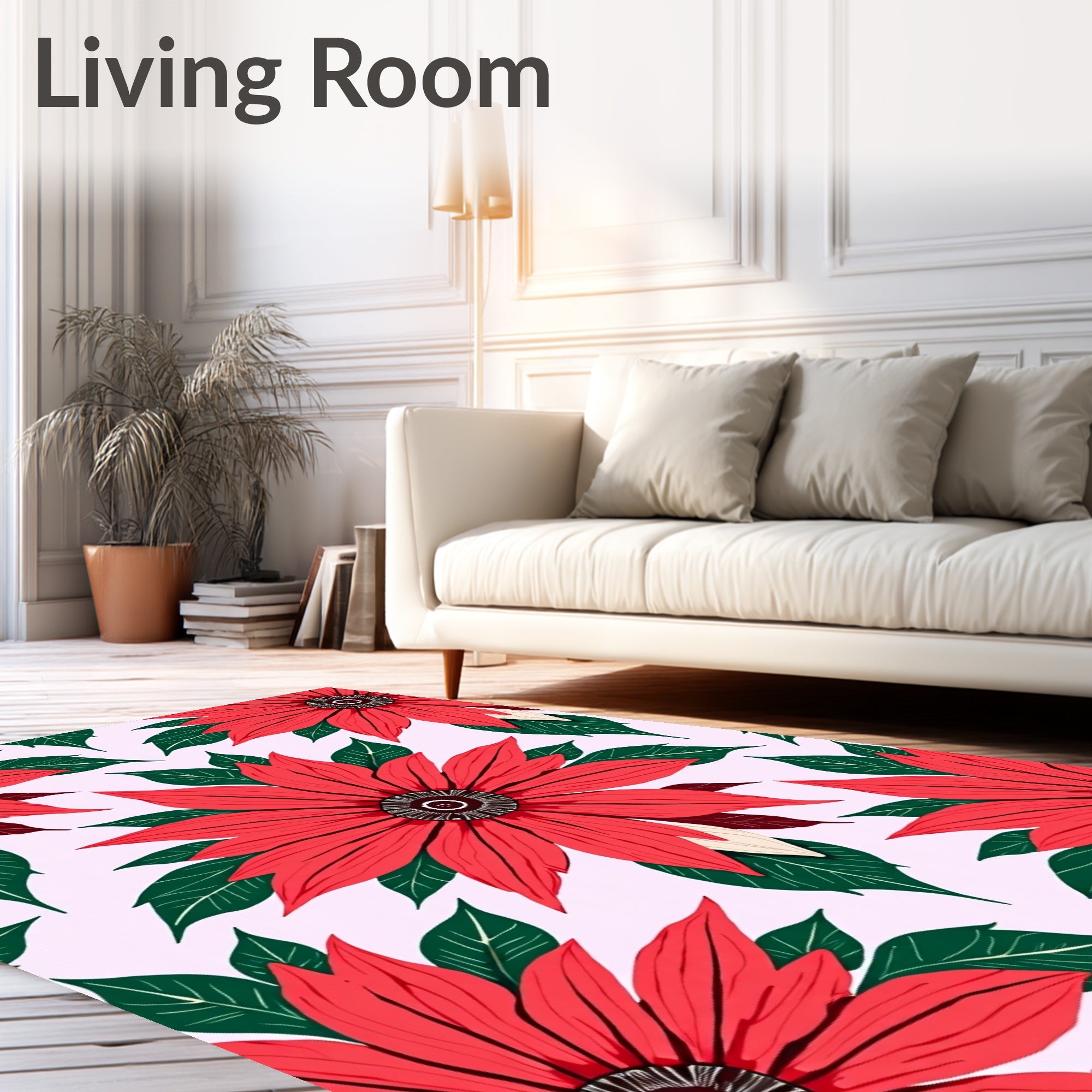 Ultra Soft Area Rug, Non Slip, Stain Resistant, Washable Area Rugs for Living Room, Bedroom, Poinsettia Bloom Botanical Print Yuletide Textile Design(Red) Overview: