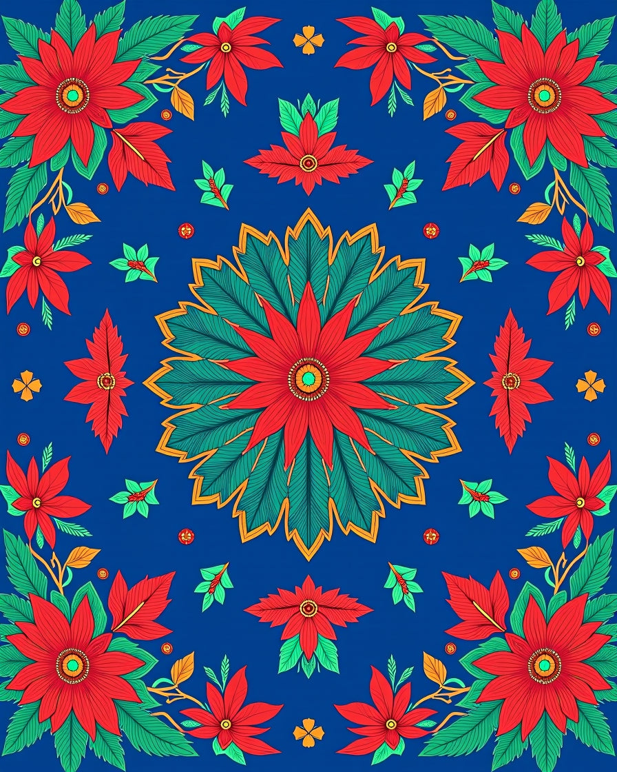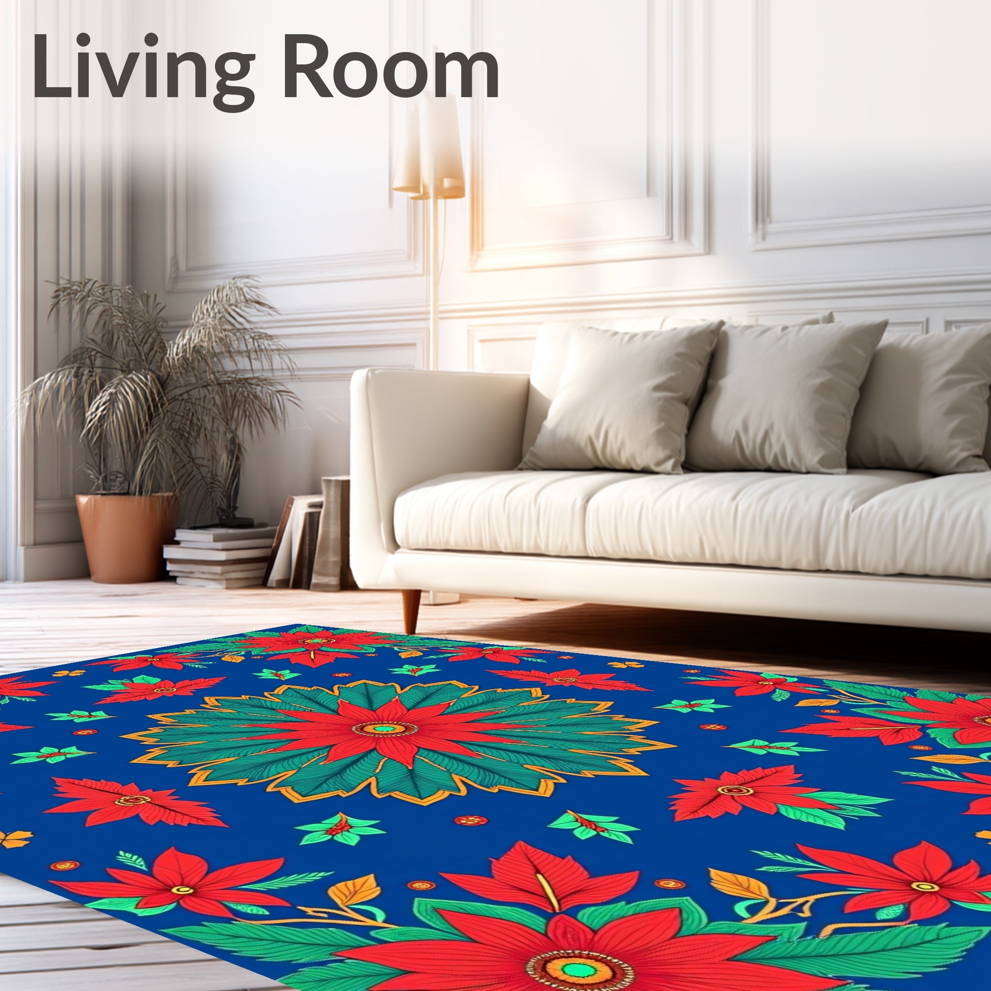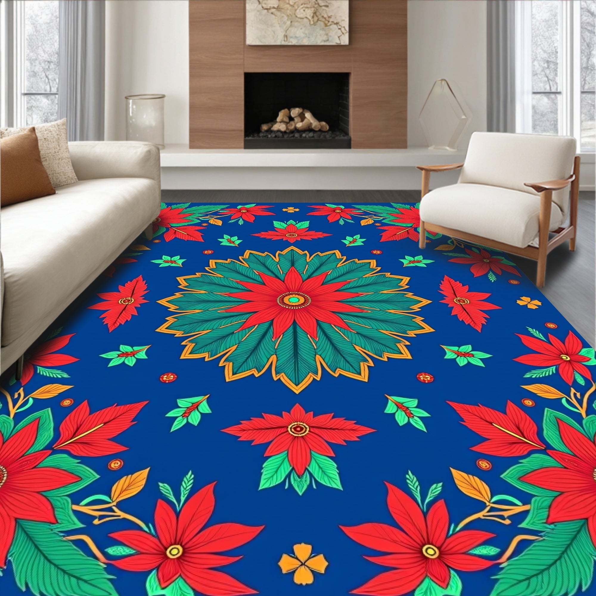 Ultra Soft Area Rug, Non Slip, Stain Resistant, Washable Area Rugs for Living Room, Bedroom, Poinsettia Bloom with Festive Botanical(Red) Overview: