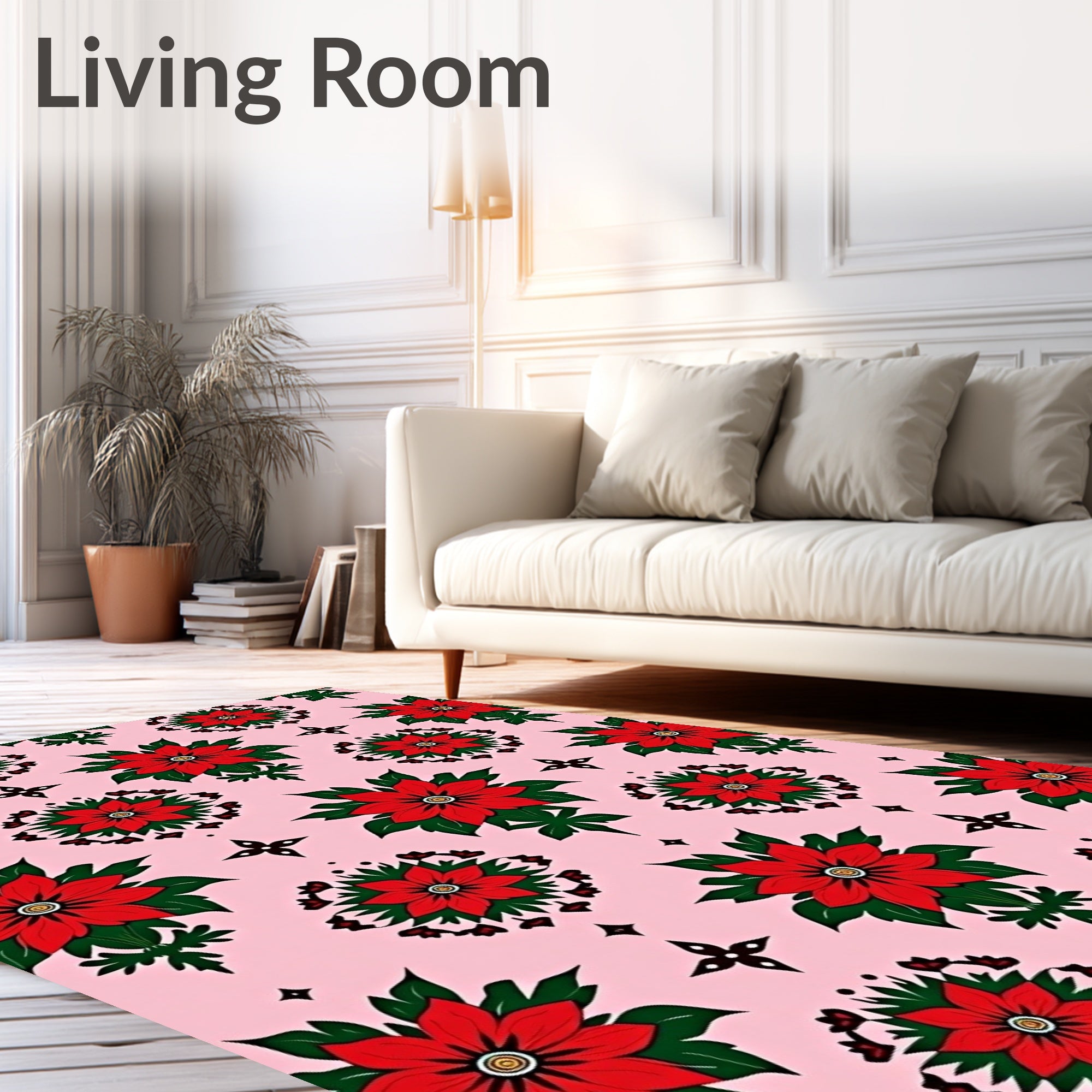 Ultra Soft Area Rug, Non Slip, Stain Resistant, Washable Area Rugs for Living Room, Bedroom, Poinsettia Blossom Damask Low Pile Christmas(Pink) Overview: