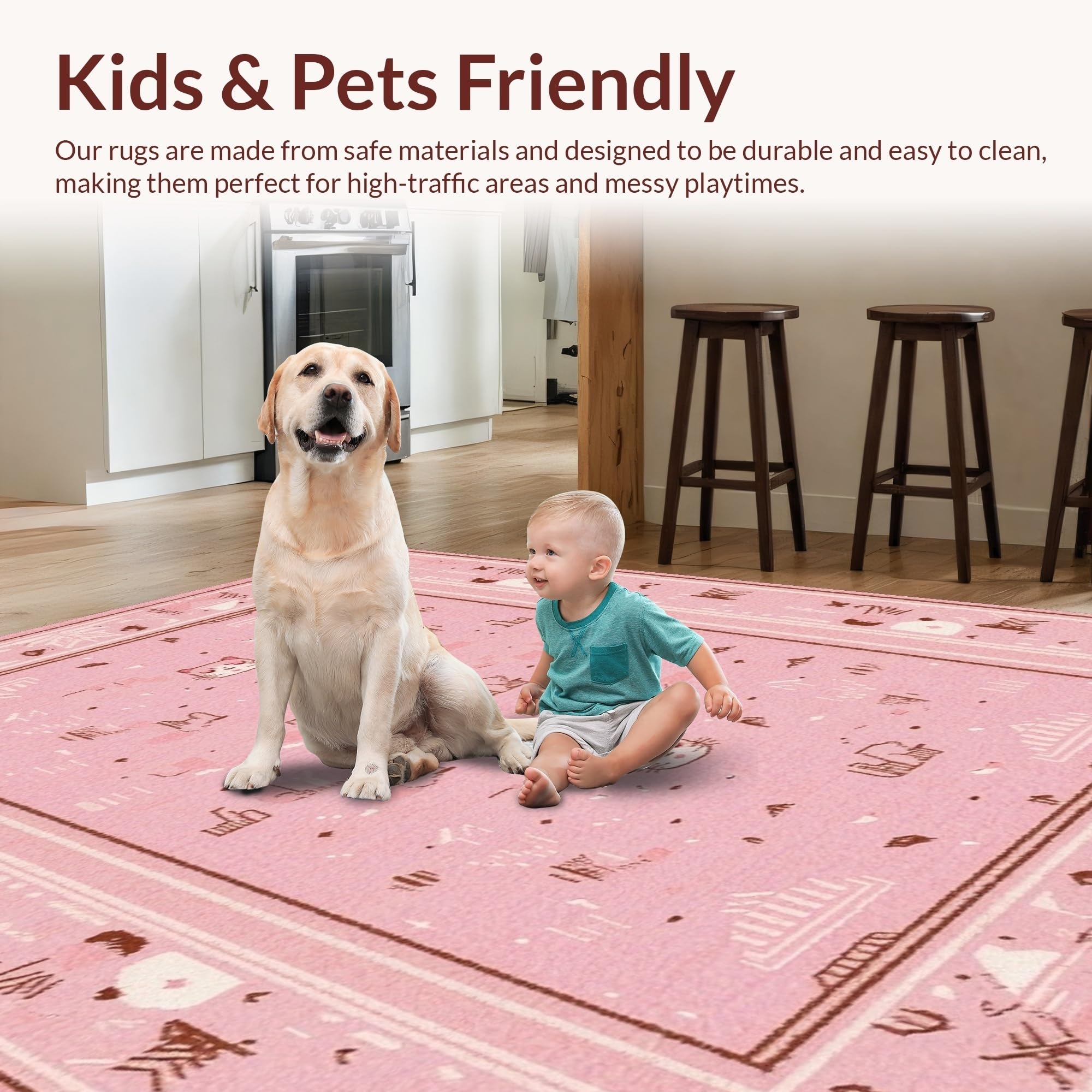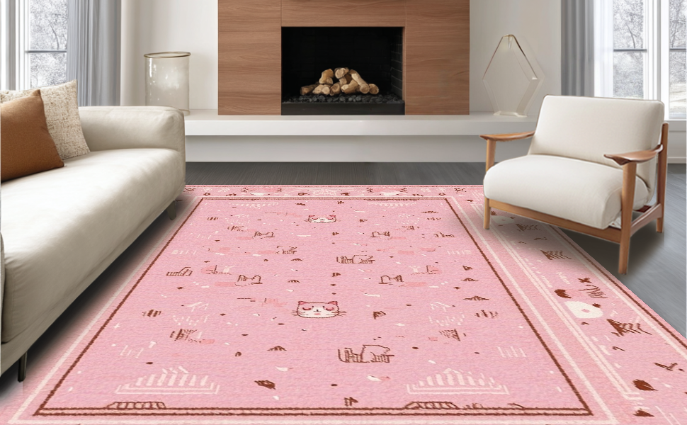 Ultra Soft Area Rug, Non Slip, Stain Resistant, Washable Area Rugs for Living Room, Bedroom, Preppy Pink Tiger Character Style(Pink) Overview: