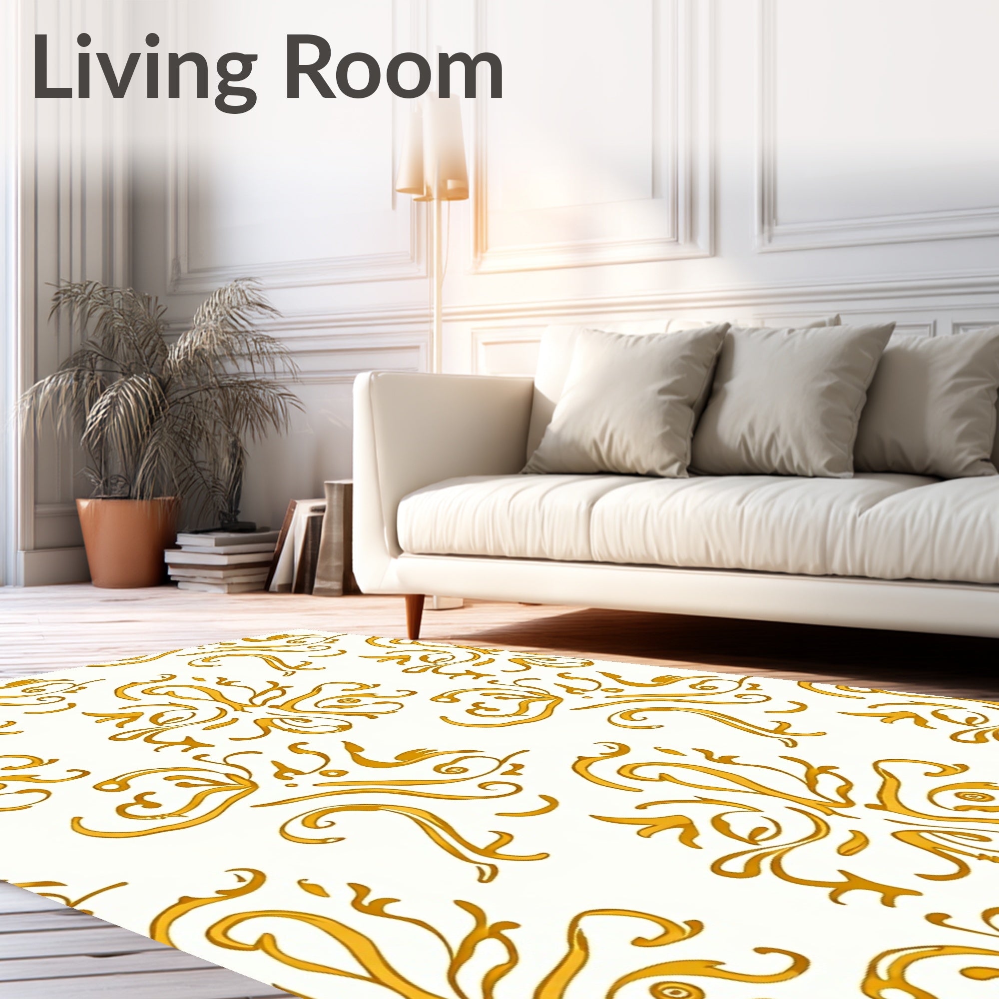 Ultra Soft Area Rug, Non Slip, Stain Resistant, Washable Area Rugs for Living Room, Bedroom, Pristine Cascade Baroque Flourish Embellished Wonderland(Gold) Overview: