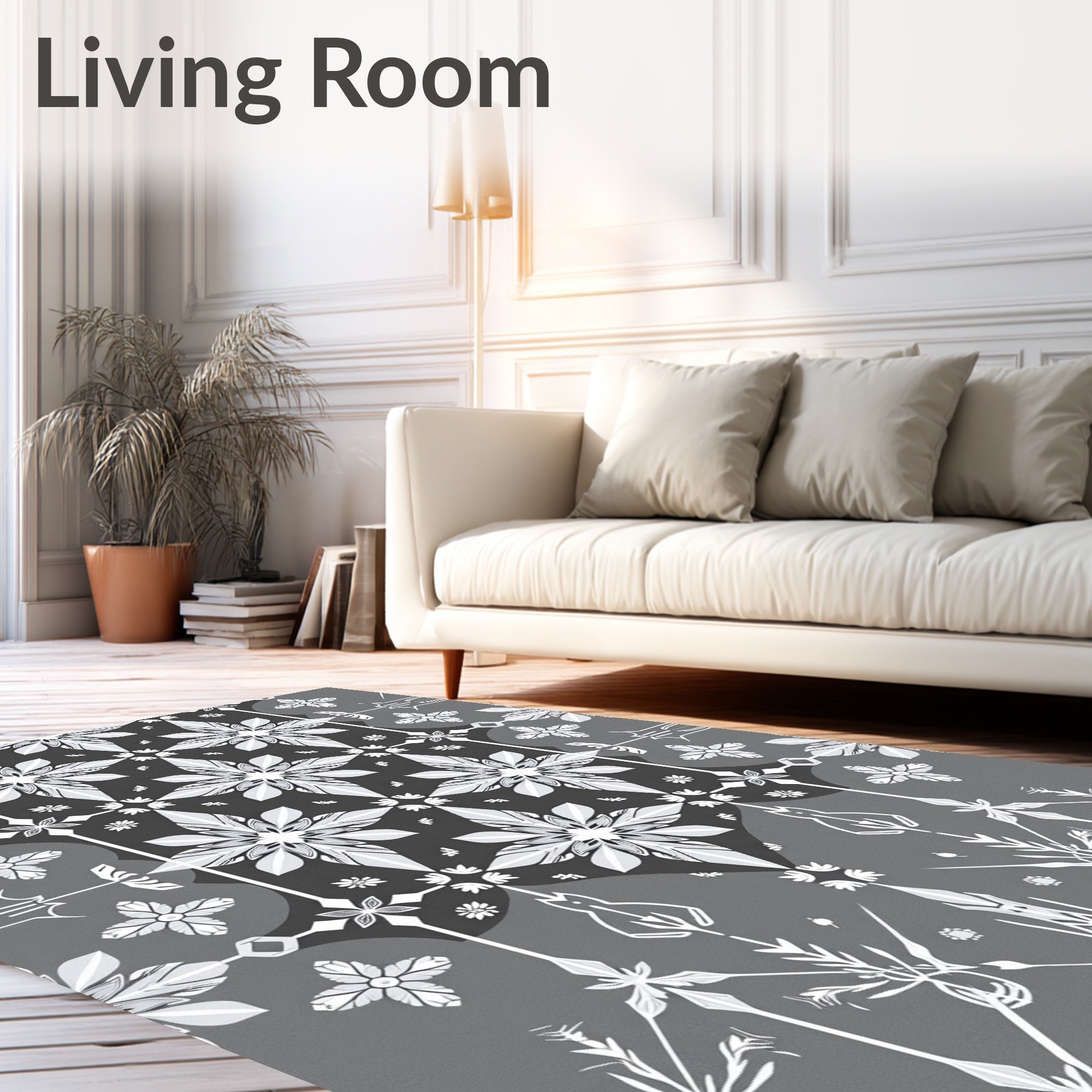 Ultra Soft Area Rug, Non Slip, Stain Resistant, Washable Area Rugs for Living Room, Bedroom, Pristine Jewel Yuletide Stunning Artistry(Gray) Overview: