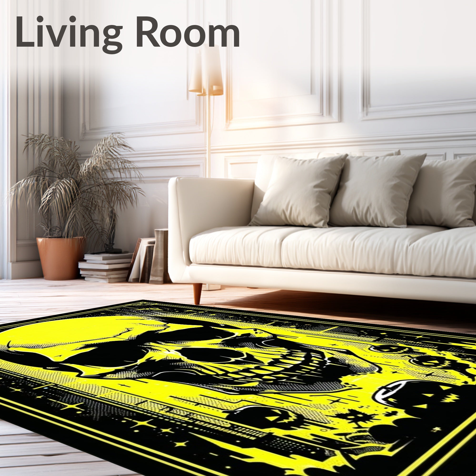 Ultra Soft Area Rug, Non Slip, Stain Resistant, Washable Area Rugs for Living Room, Bedroom, Punk Rock Edgy Skull Motif(Yellow) Overview: