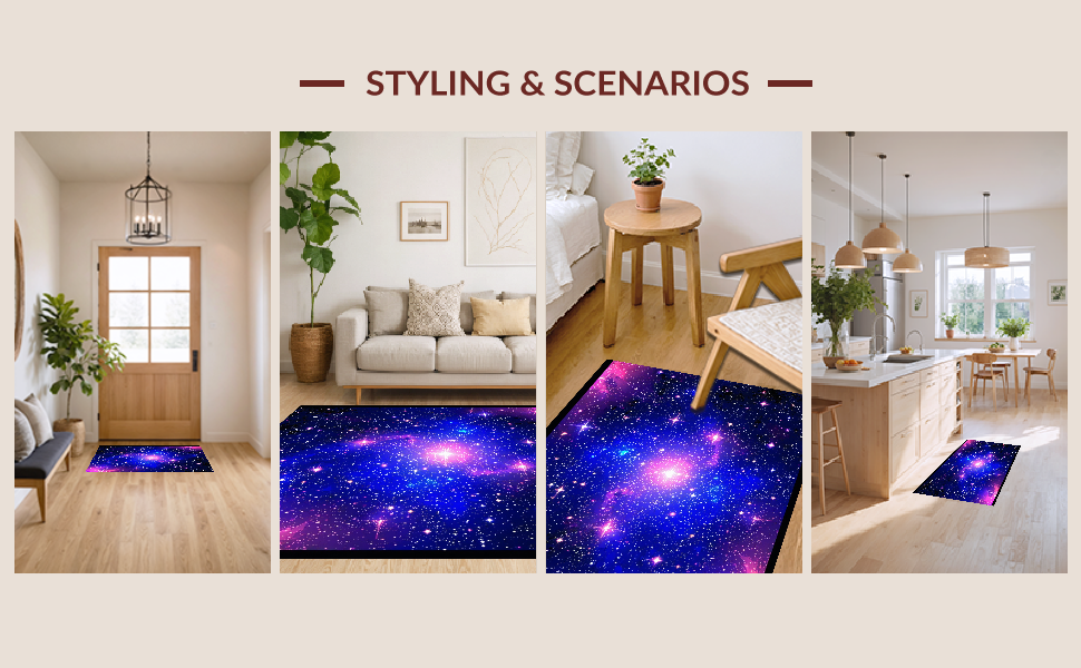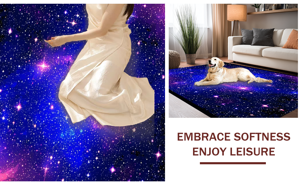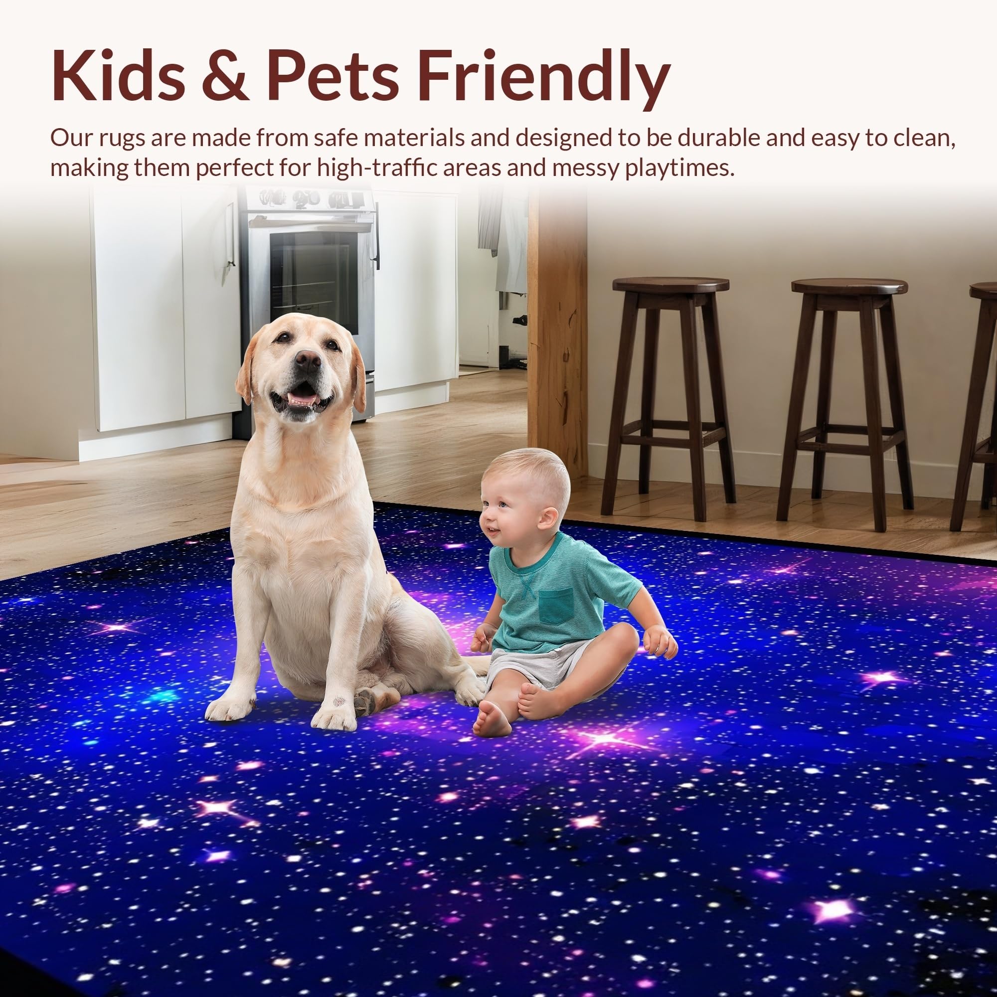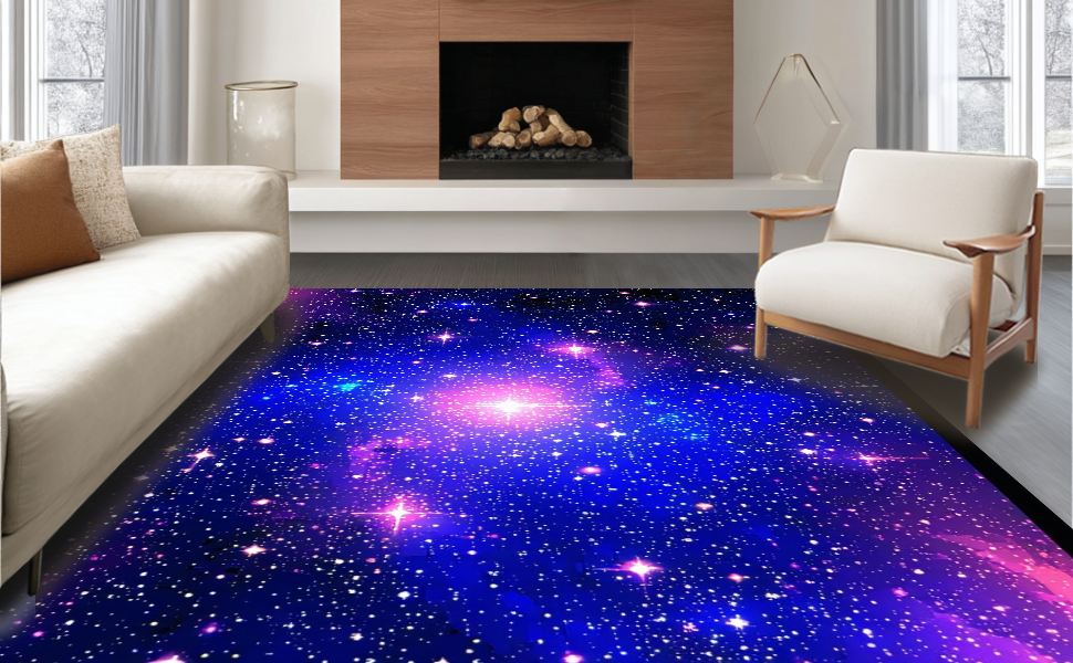 Ultra Soft Area Rug, Non Slip, Stain Resistant, Washable Area Rugs for Living Room, Bedroom, Radiant Astral Flow Motif(Purple) Overview: