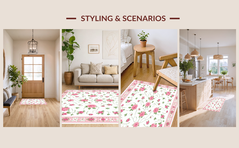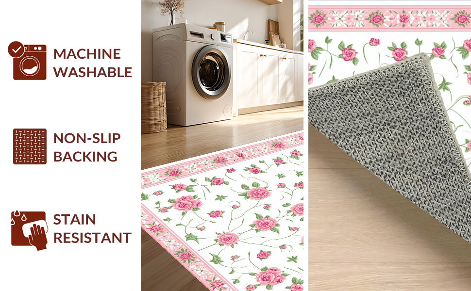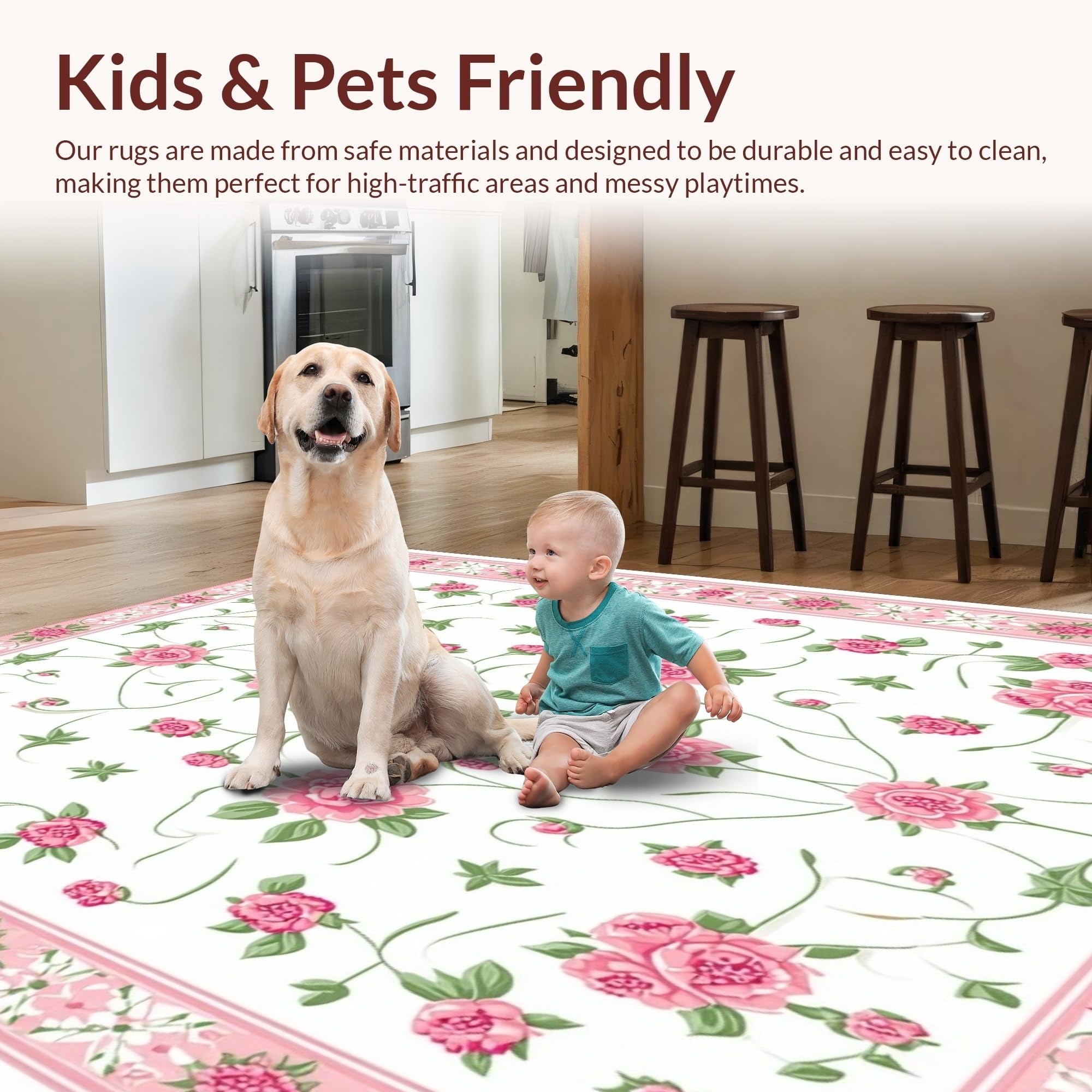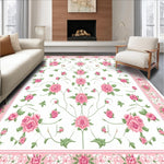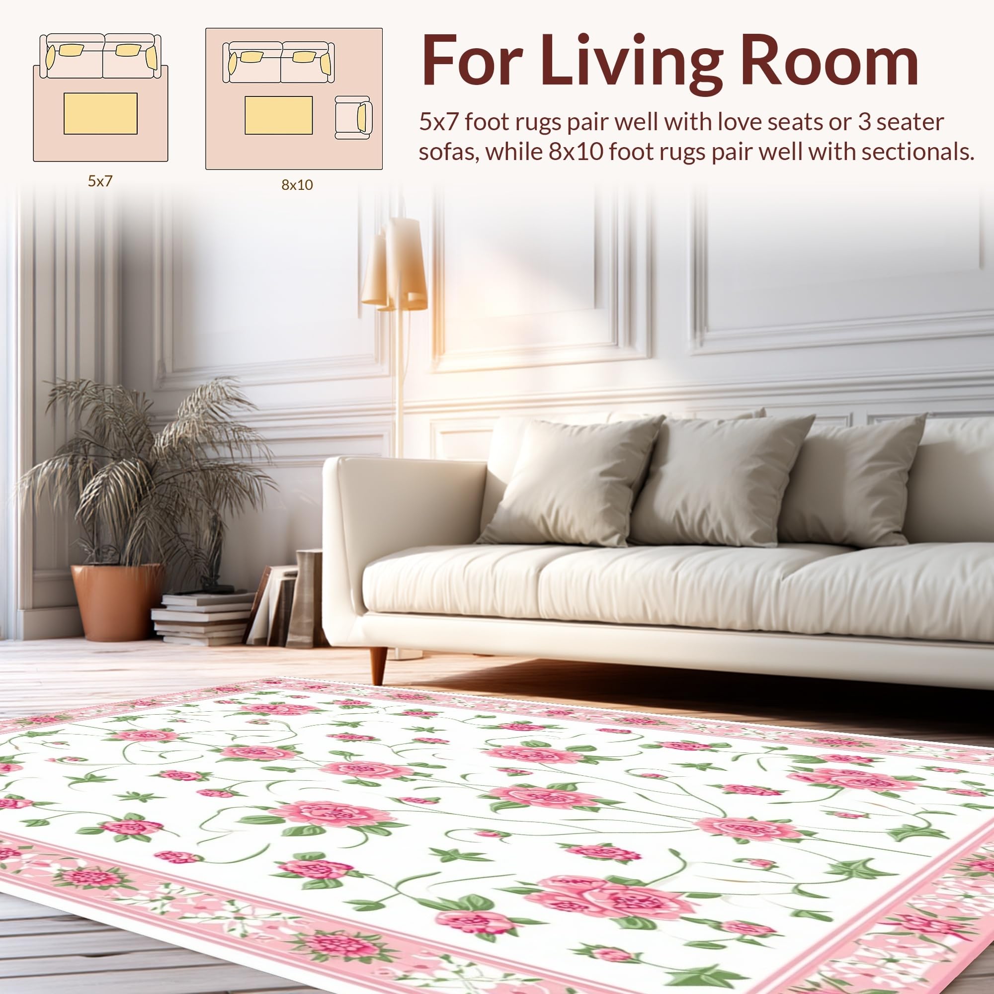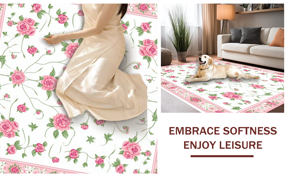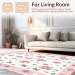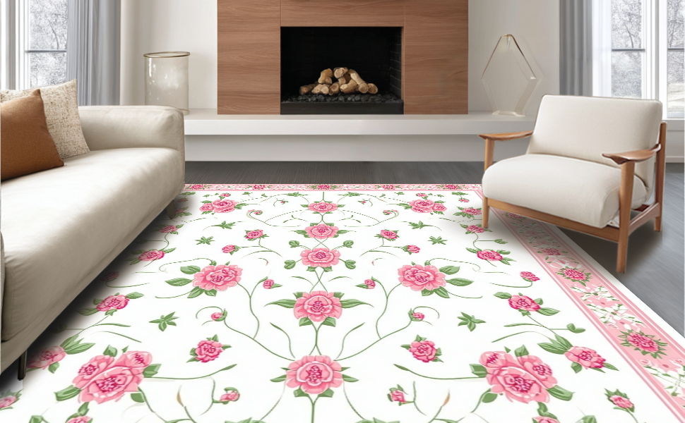 Ultra Soft Area Rug, Non Slip, Stain Resistant, Washable Area Rugs for Living Room, Bedroom, Radiant Light Pink Floral Artistry(White) Overview:
