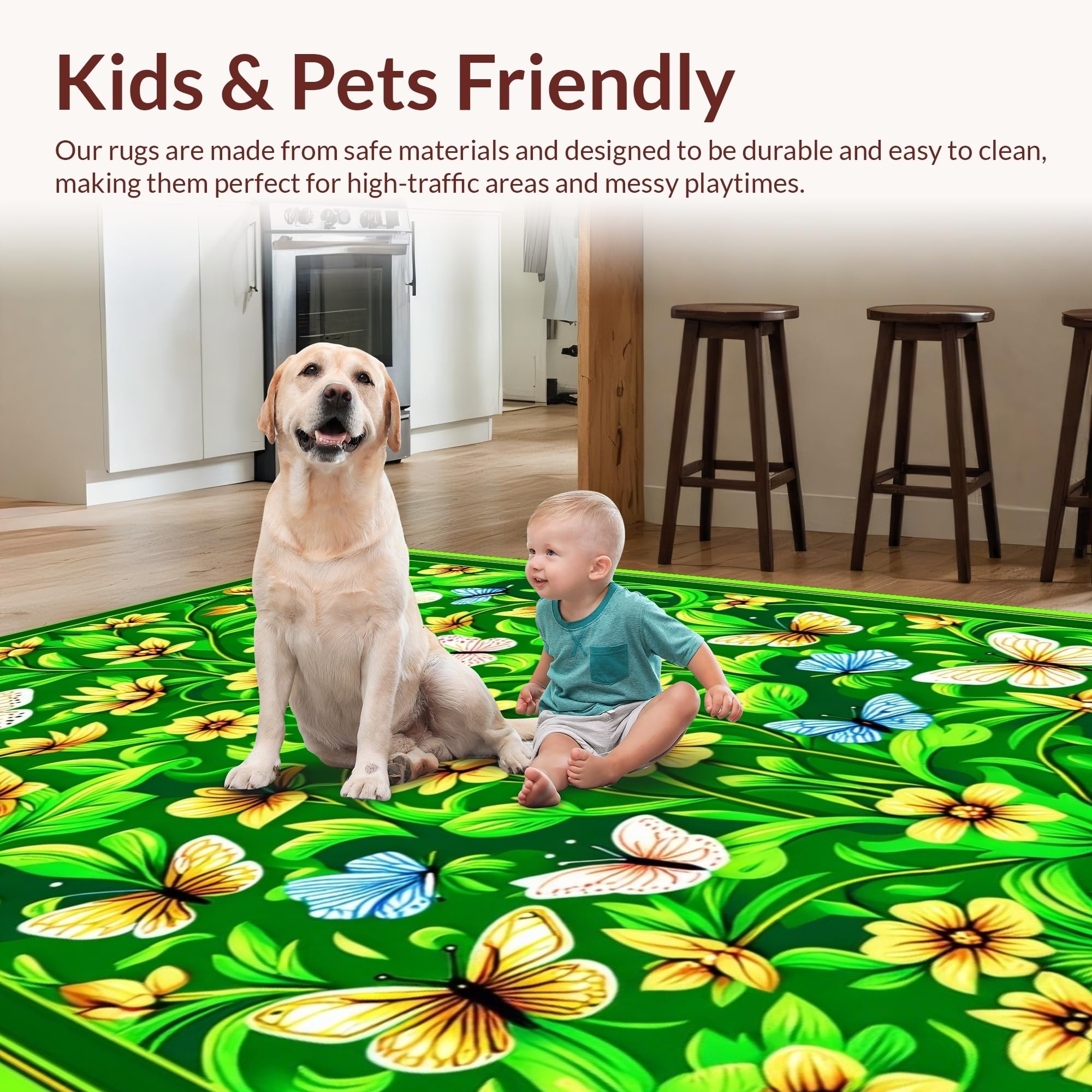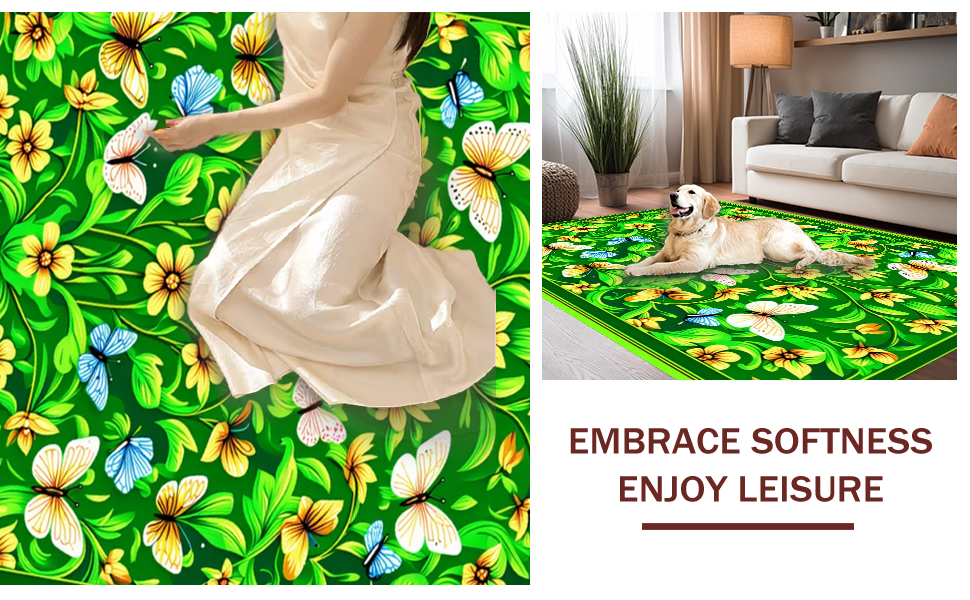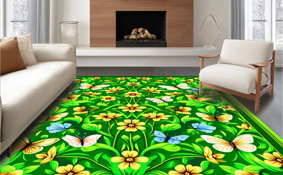 Ultra Soft Area Rug, Non Slip, Stain Resistant, Washable Area Rugs for Living Room, Bedroom, Radiant Summer-Inspired Visuals(Green) Overview:
