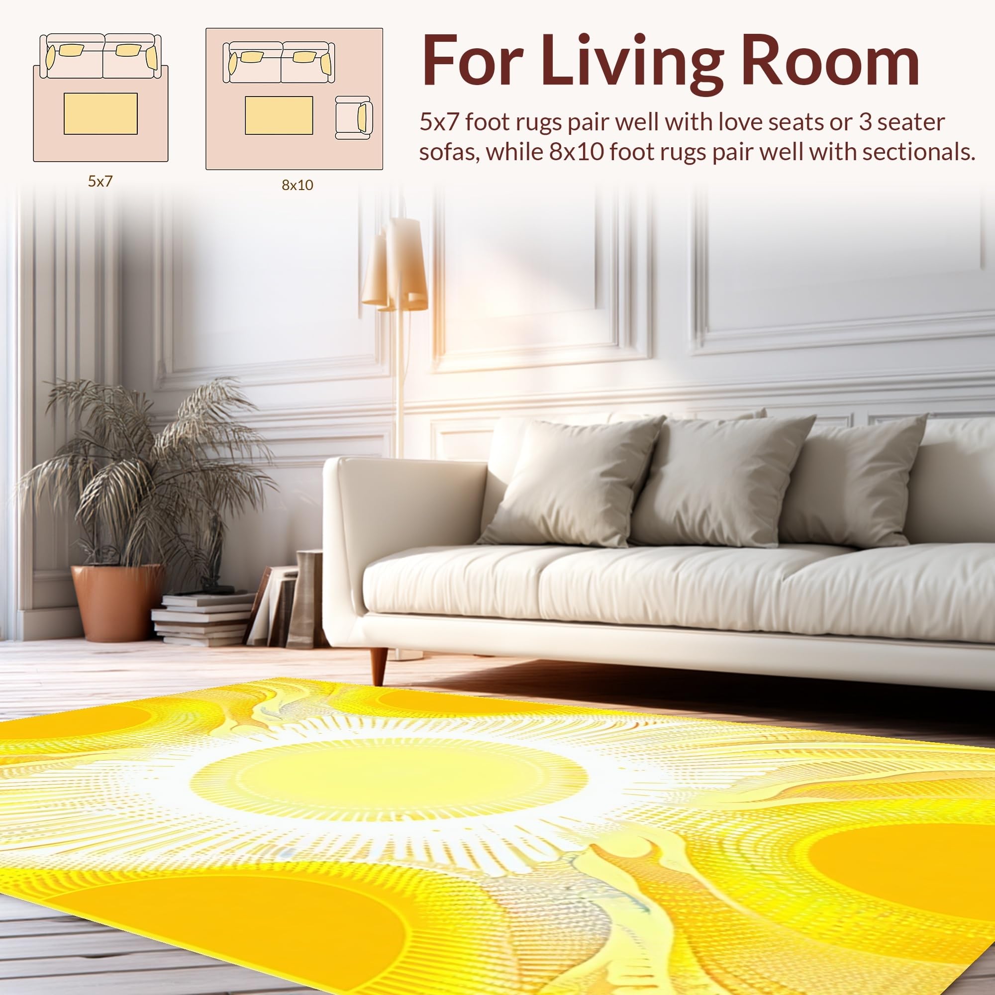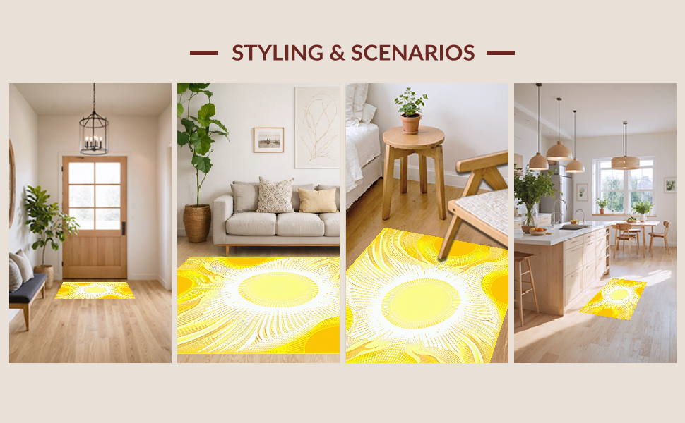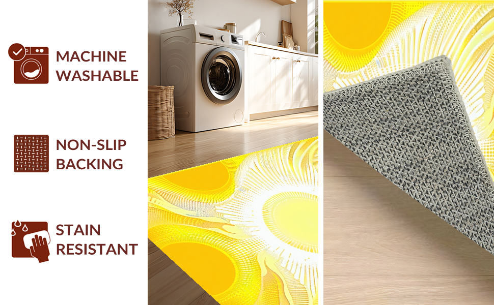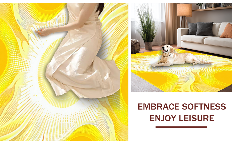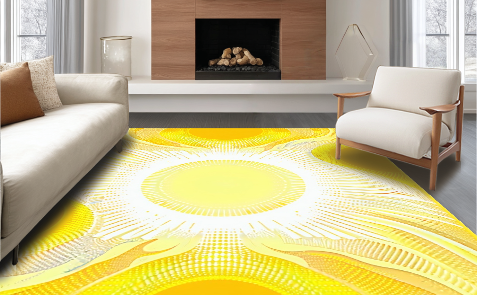 Ultra Soft Area Rug, Non Slip, Stain Resistant, Washable Area Rugs for Living Room, Bedroom, Radiant Sunshine Gradient Motif(Yellow) Overview:
