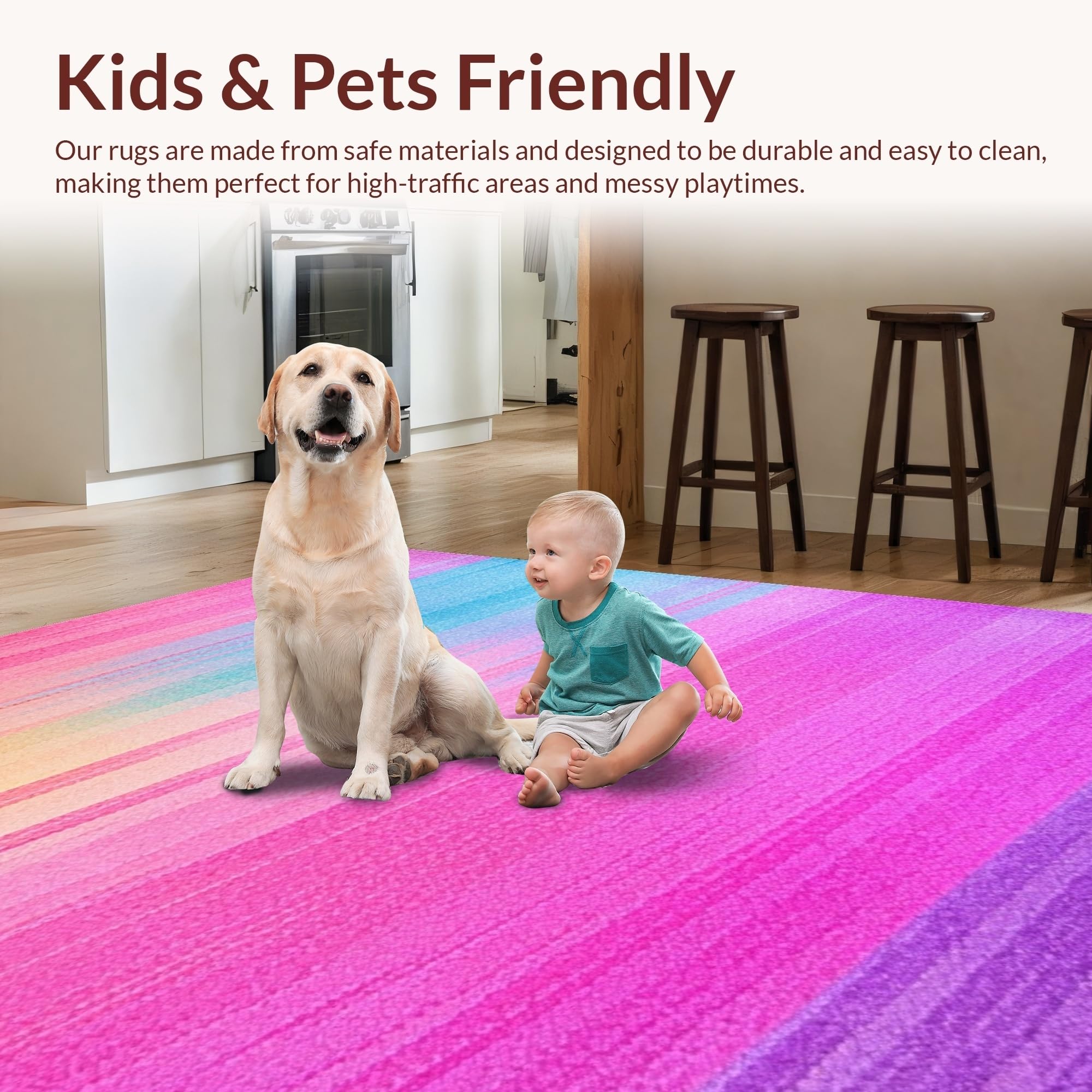 Ultra Soft Area Rug, Non Slip, Stain Resistant, Washable Area Rugs for Living Room, Bedroom, Radiant Vibrant Swirl Composition(Pink) Overview: