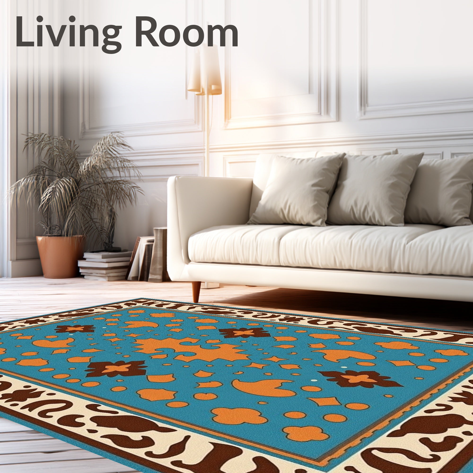 Ultra Soft Area Rug, Non Slip, Stain Resistant, Washable Area Rugs for Living Room, Bedroom, Ranch Style Animal Print with Authentic Markings(Blue) Overview: