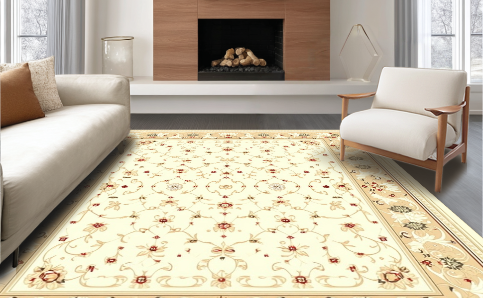 Ultra Soft Area Rug, Non Slip, Stain Resistant, Washable Area Rugs for Living Room, Bedroom, Refined Beige Textured Swirl Design(Beige) Overview: