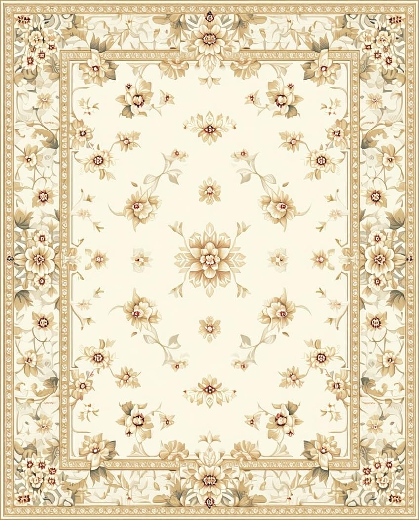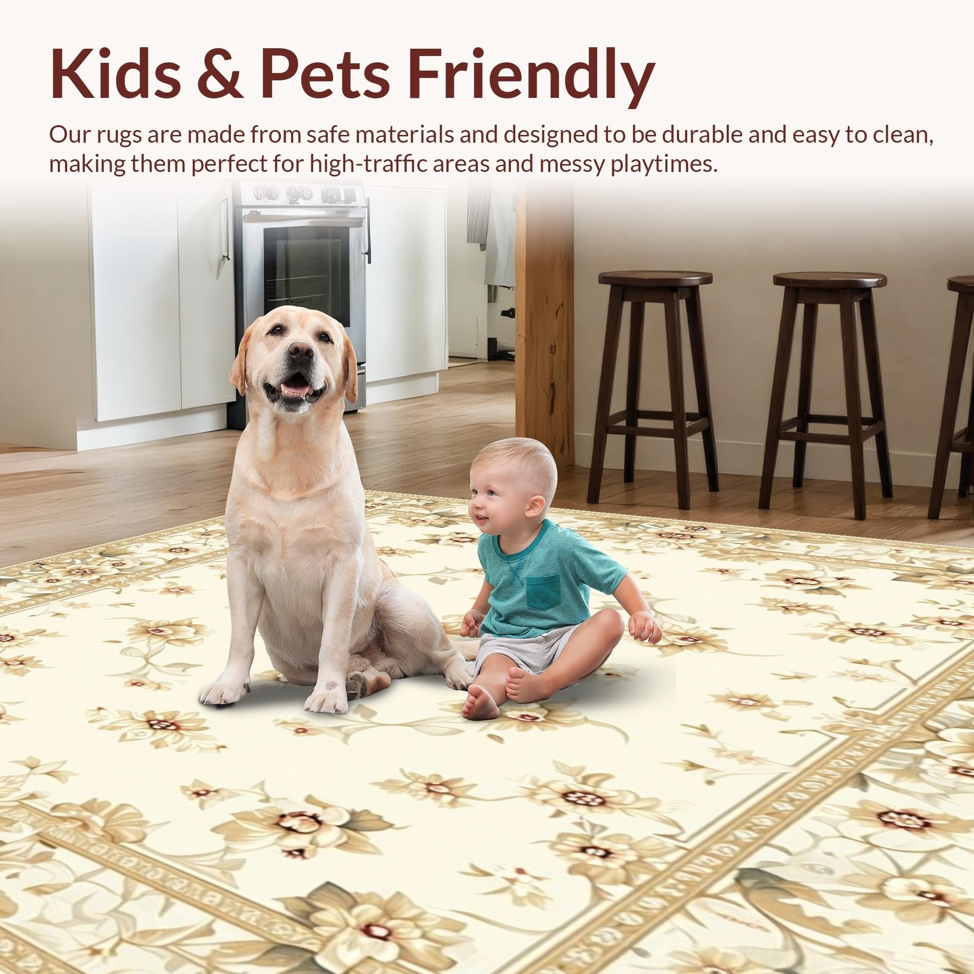 Ultra Soft Area Rug, Non Slip, Stain Resistant, Washable Area Rugs for Living Room, Bedroom, Refined Cream and Beige with Traditional Oriental Floral Design(Beige) Overview: