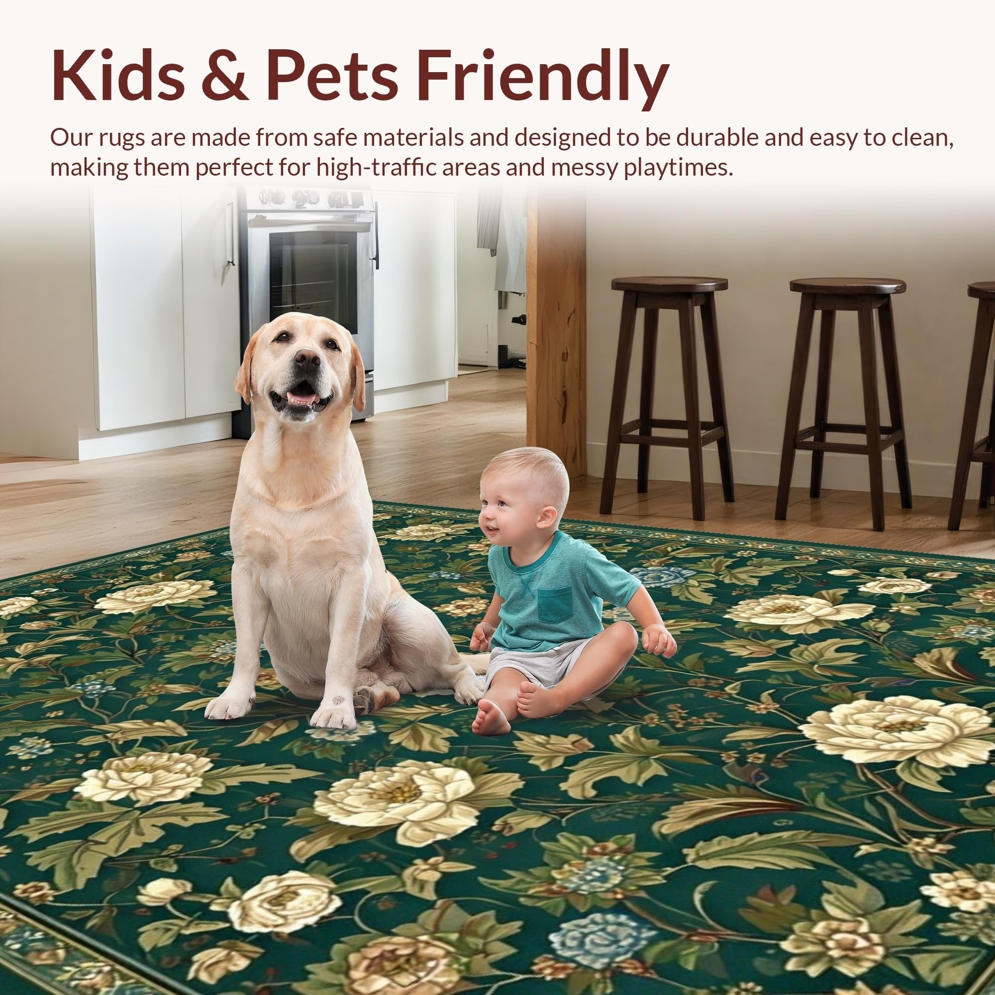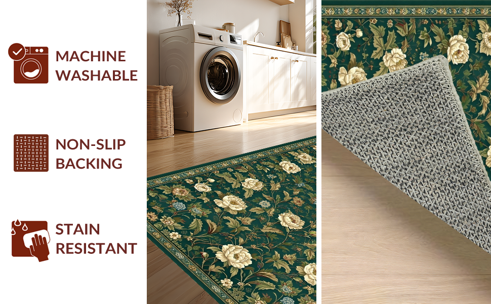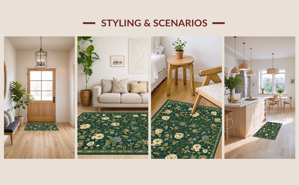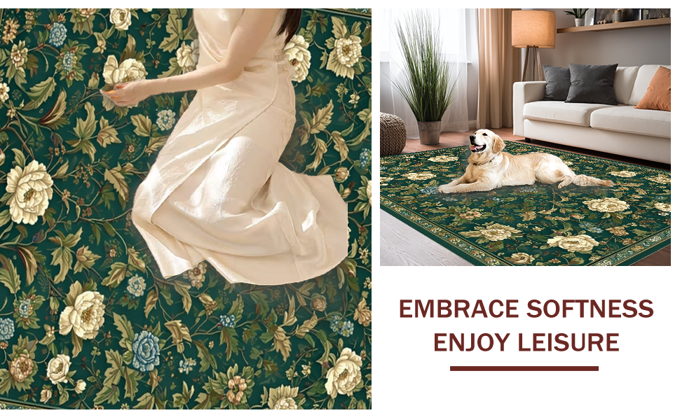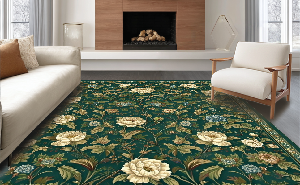 Ultra Soft Area Rug, Non Slip, Stain Resistant, Washable Area Rugs for Living Room, Bedroom, Refined Dark Green Nature Aesthetics(Green) Overview: