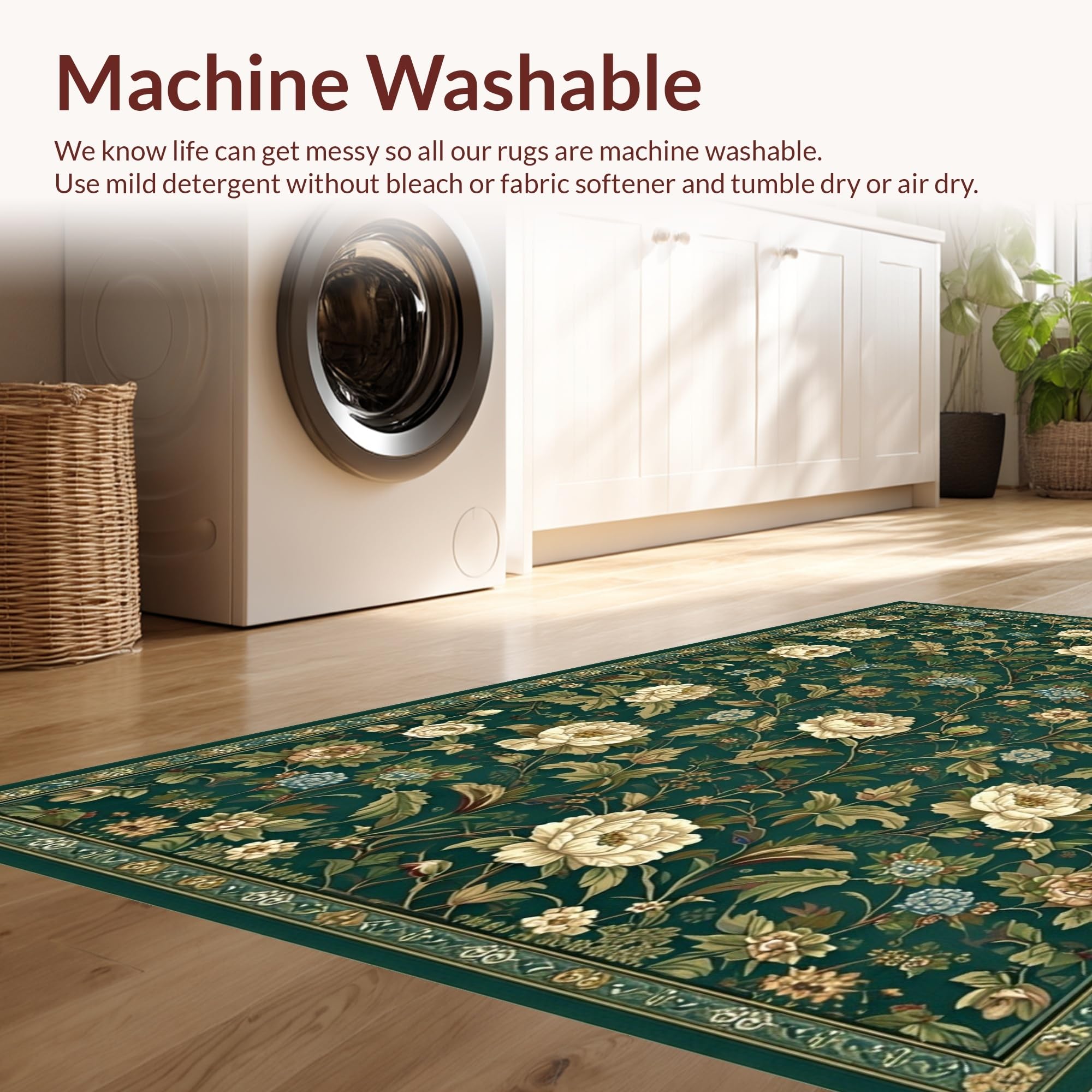 - Machine Washable: Our rugs can be easily thrown in the wash machine.