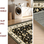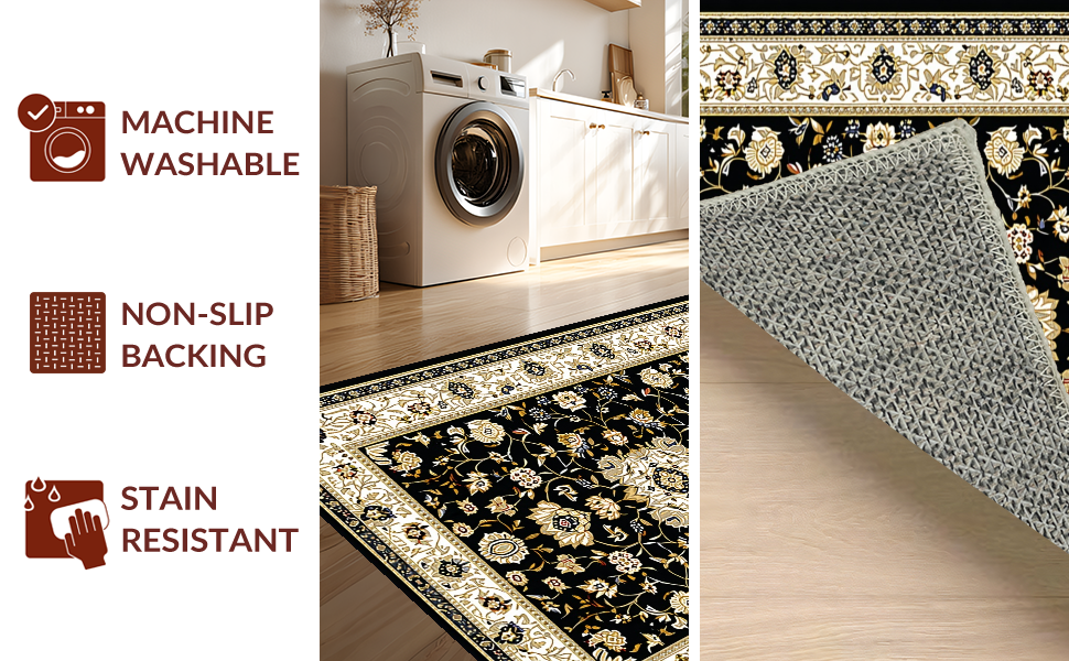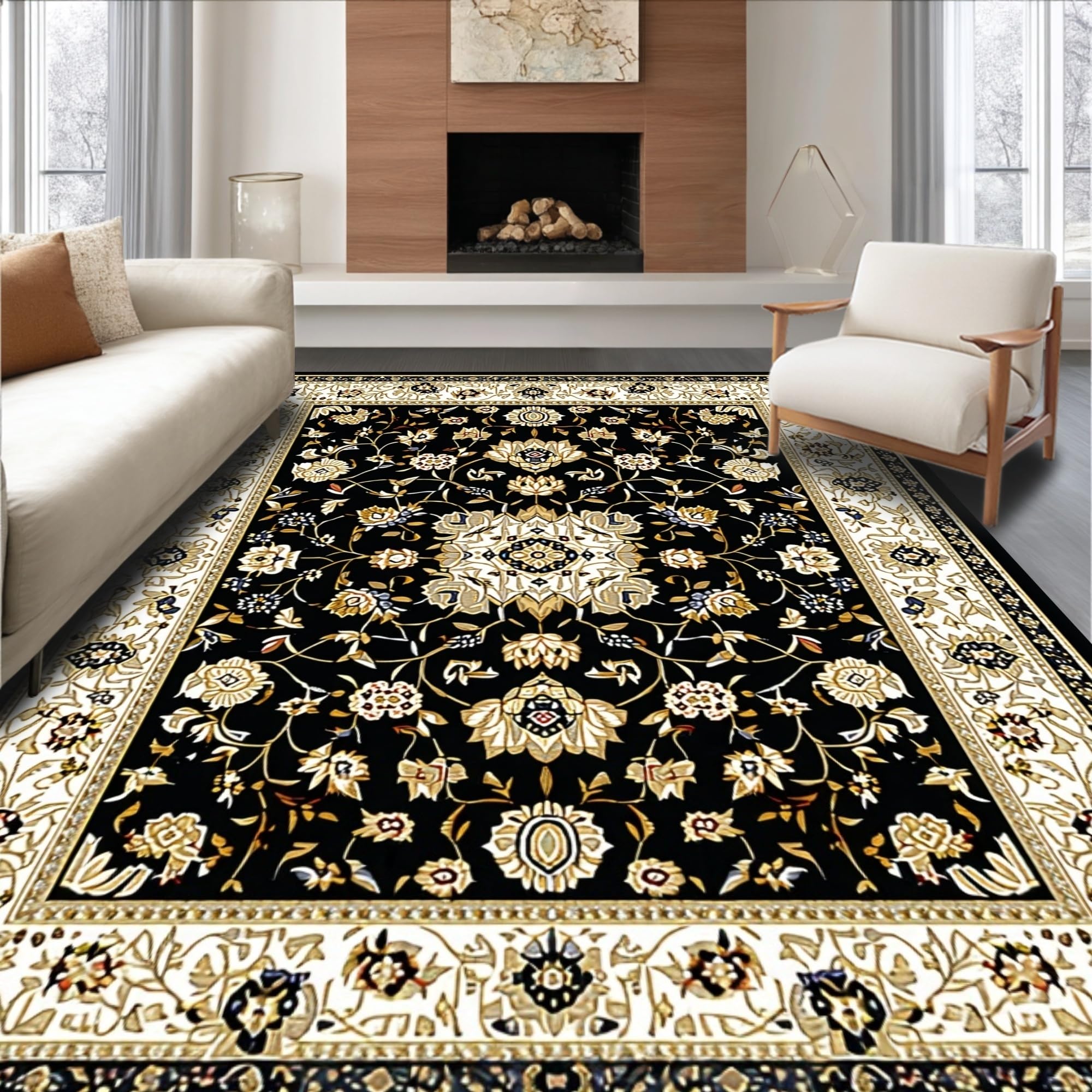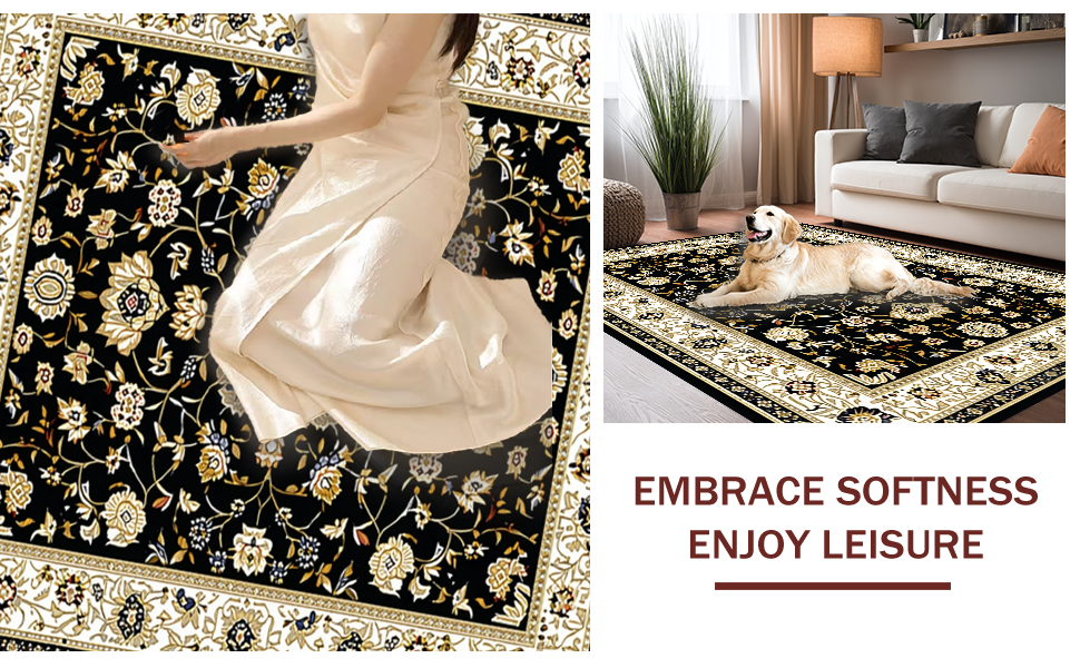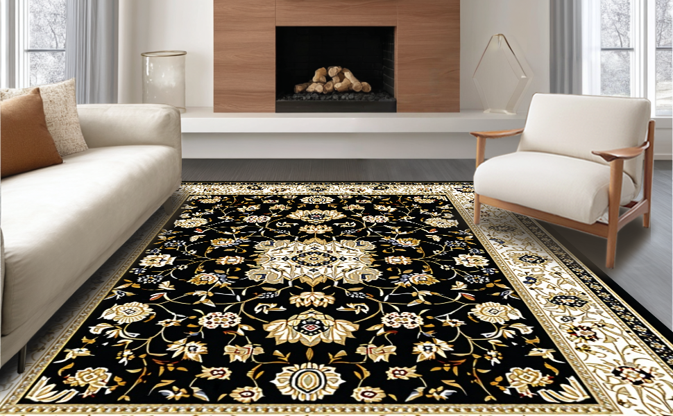 Ultra Soft Area Rug, Non Slip, Stain Resistant, Washable Area Rugs for Living Room, Bedroom, Refined Earthy Floral Composition(Black) Overview: