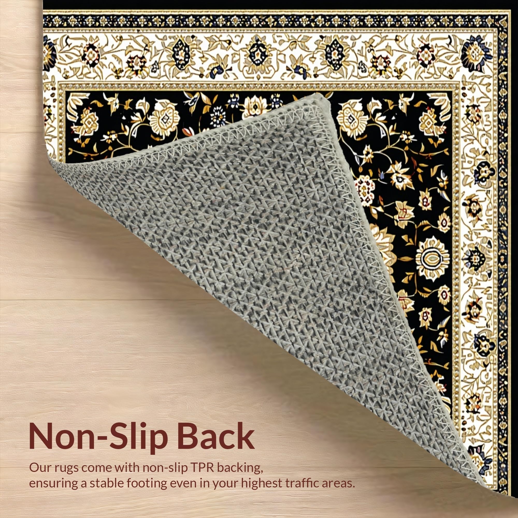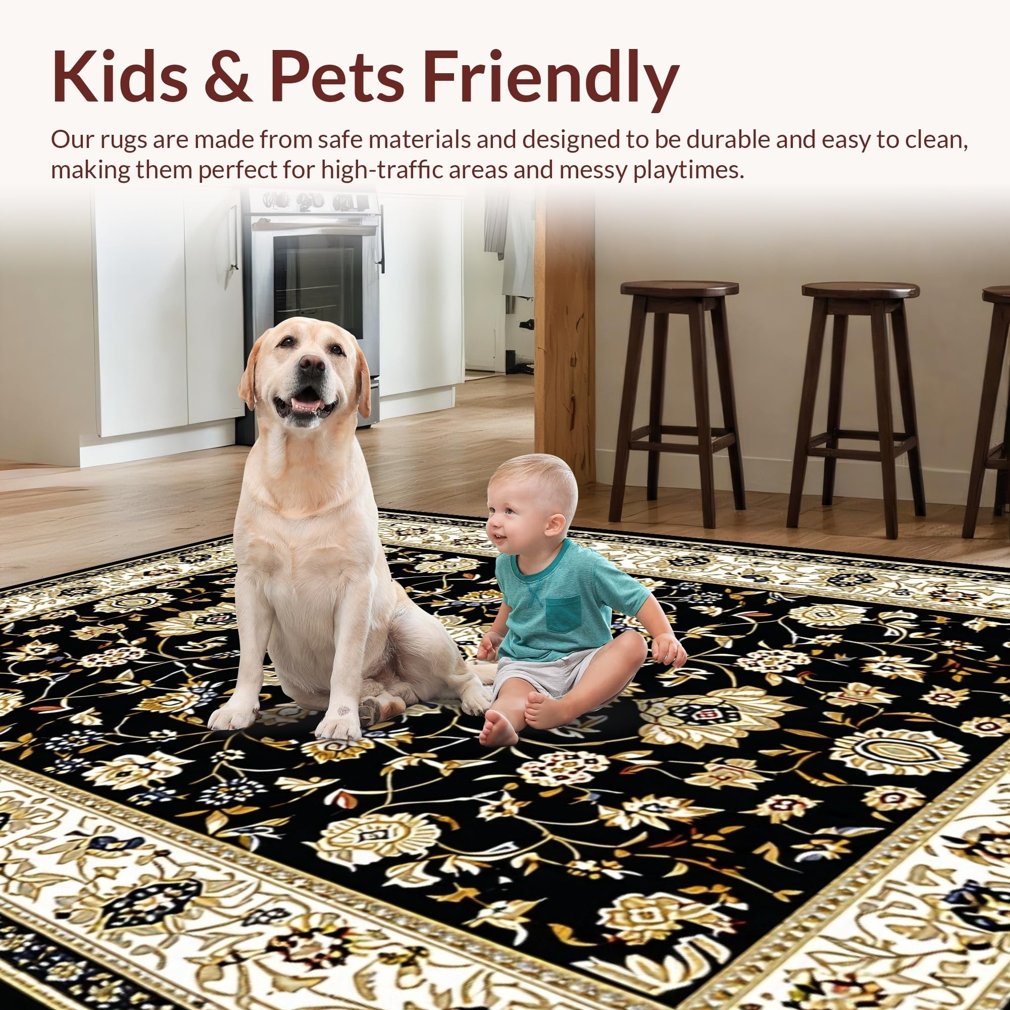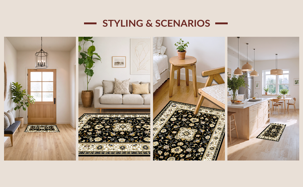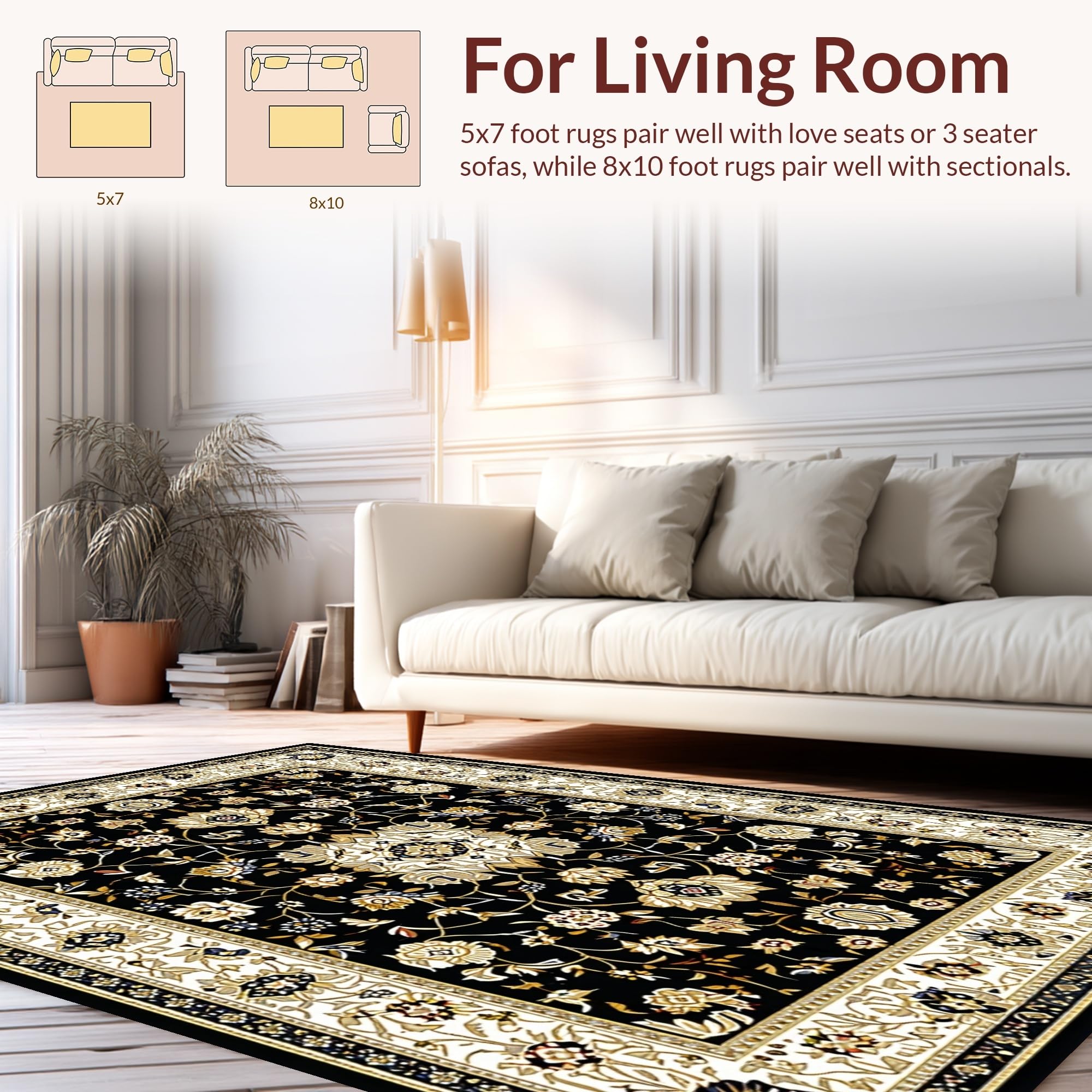 Ultra Soft Area Rug, Non Slip, Stain Resistant, Washable Area Rugs for Living Room, Bedroom, Refined Earthy Floral Composition(Black) Overview: