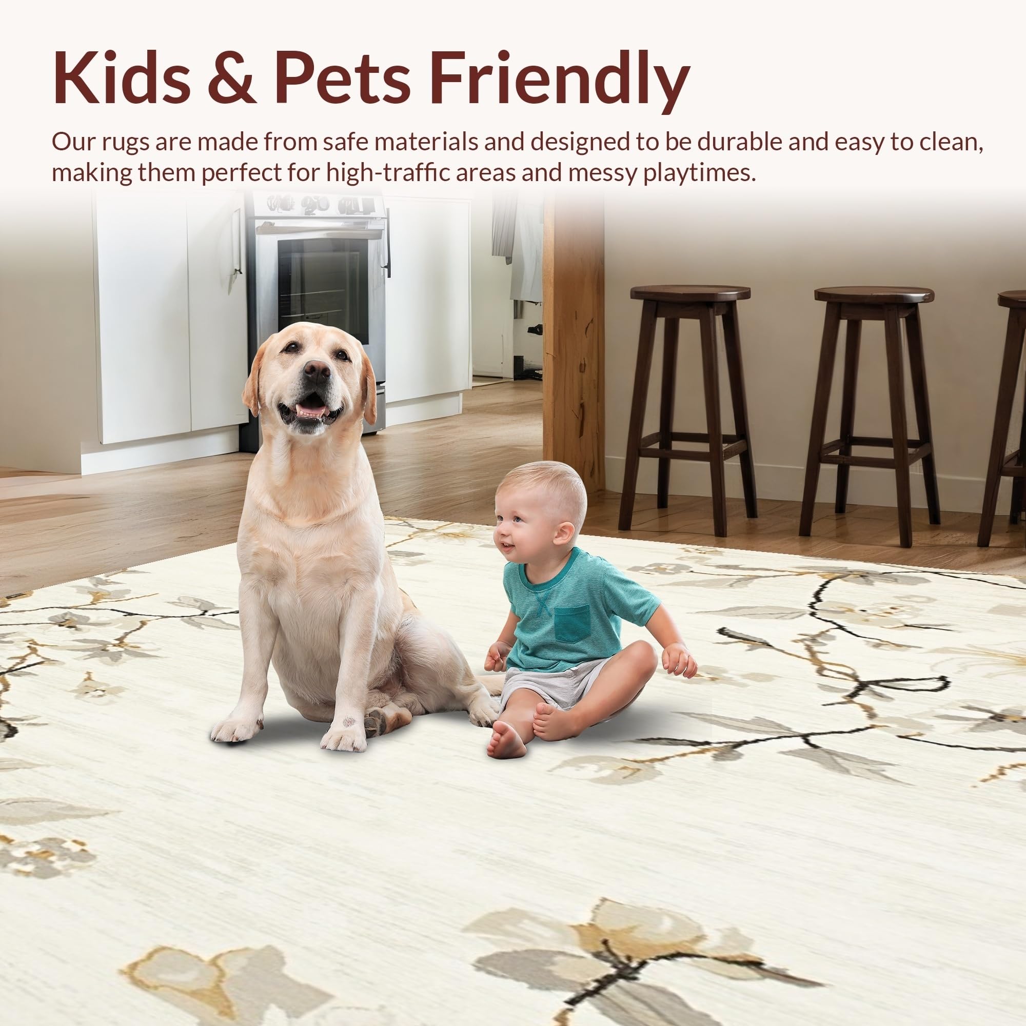 Ultra Soft Area Rug, Non Slip, Stain Resistant, Washable Area Rugs for Living Room, Bedroom, Refined Isabella Cream Beige Abstract Floral Area(Beige) Overview: