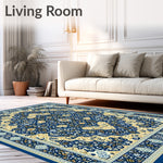 Flatwoven High Traffic Area Rug, Refined Oriental Inspired with Elegant and Beige, Non Slip, Stain Resistant, Washable Area Rugs for Living Room, Bedroom (Blue) Overview: