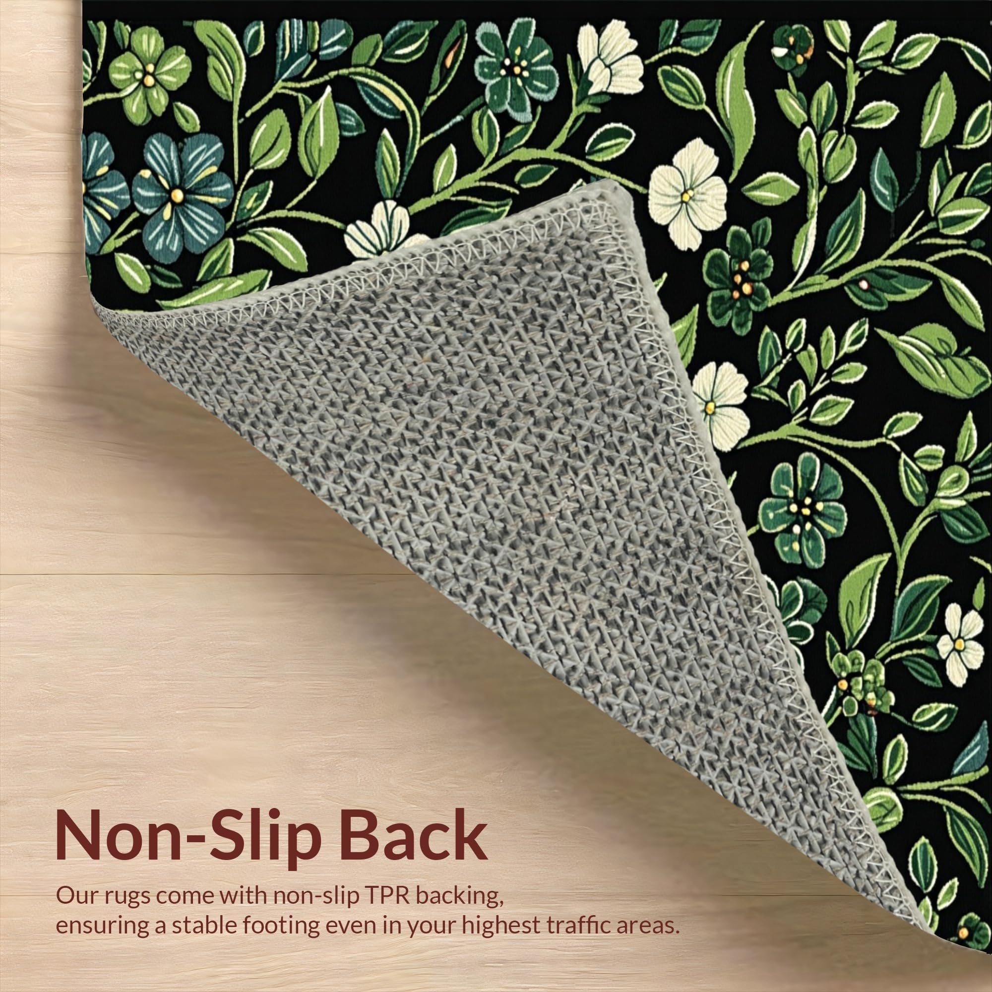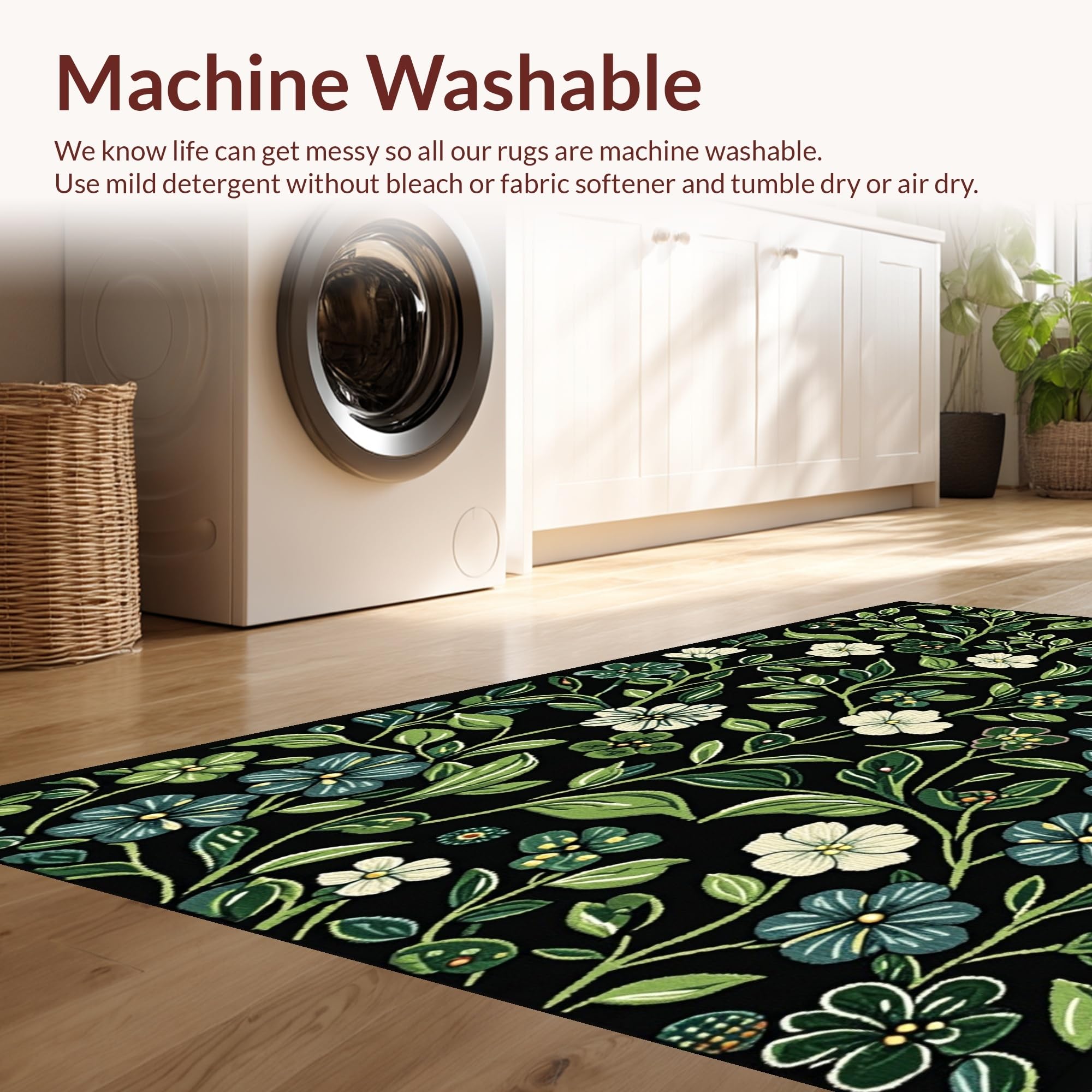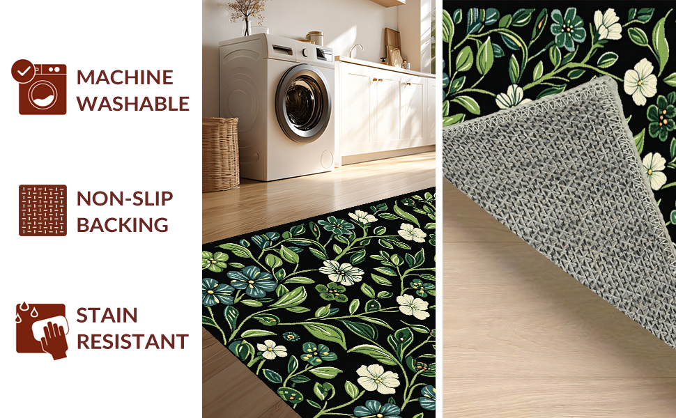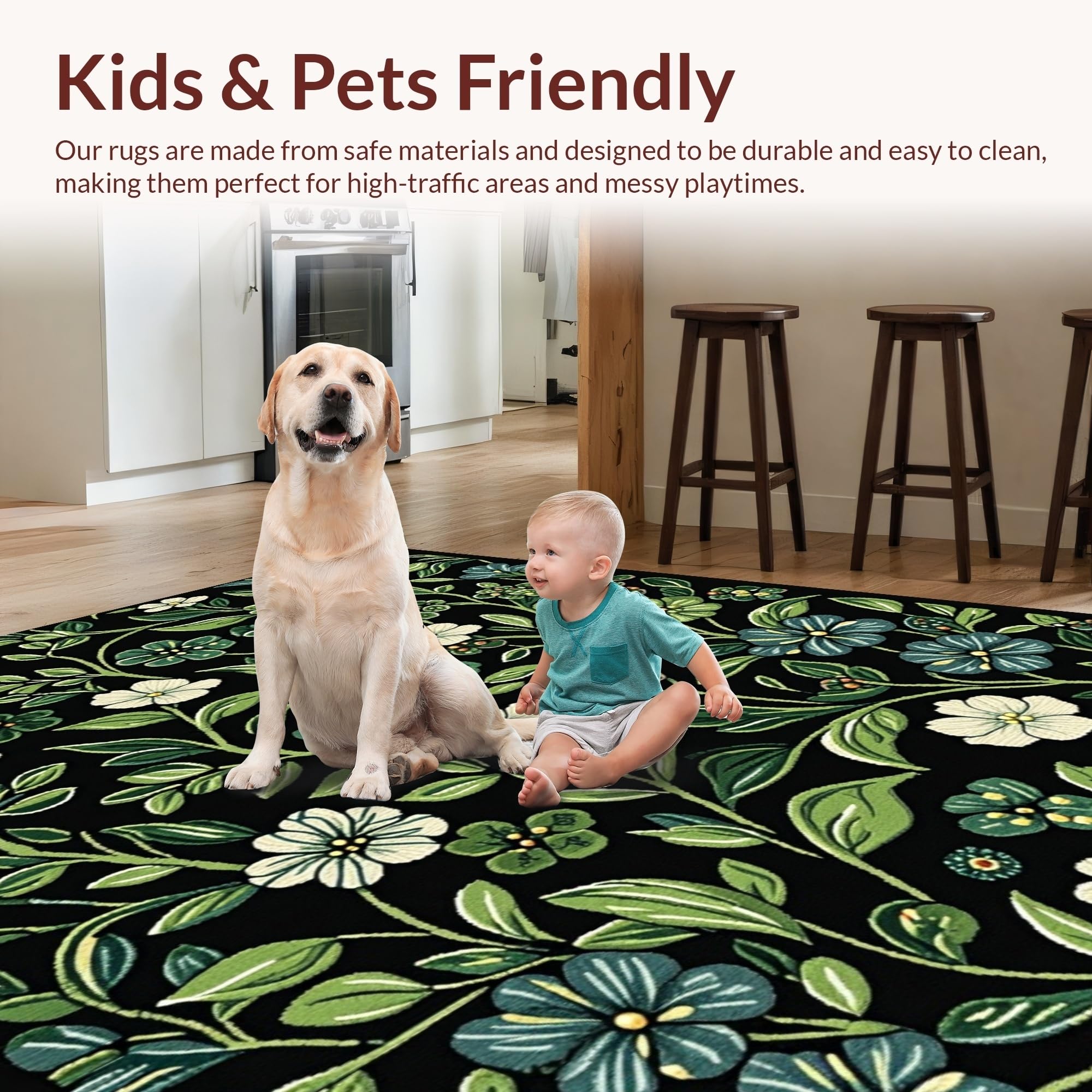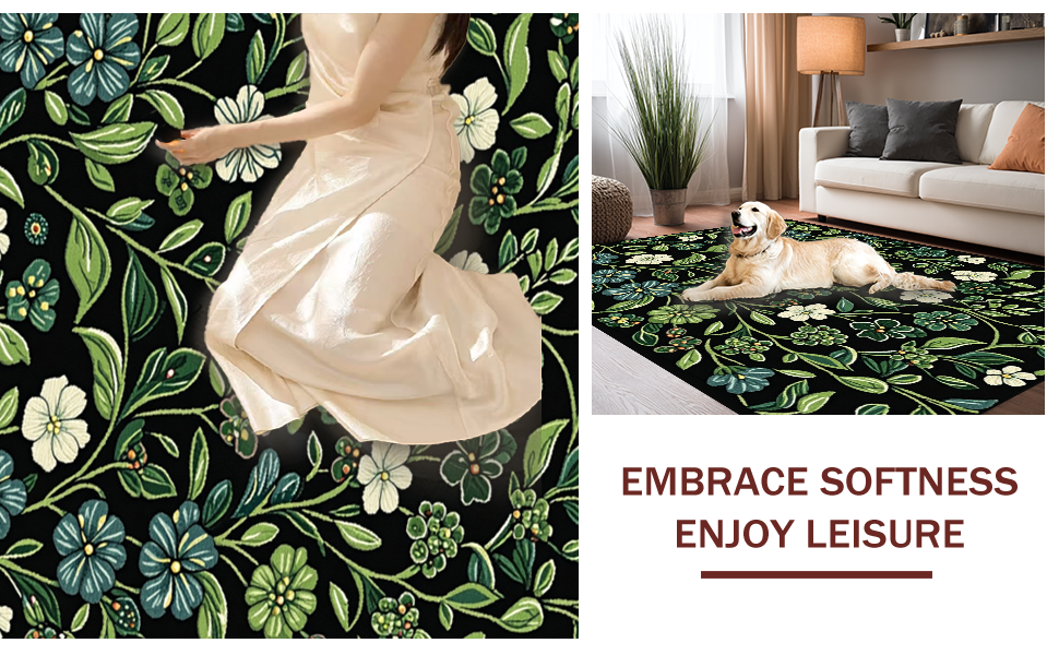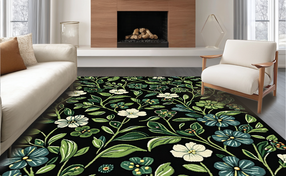 Ultra Soft Area Rug, Non Slip, Stain Resistant, Washable Area Rugs for Living Room, Bedroom, Refined Urban Botanical Style(Black) Overview: