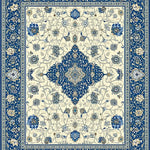 Regal Azure Bloom Dark Blue Beige Floral Medallion(Beige)