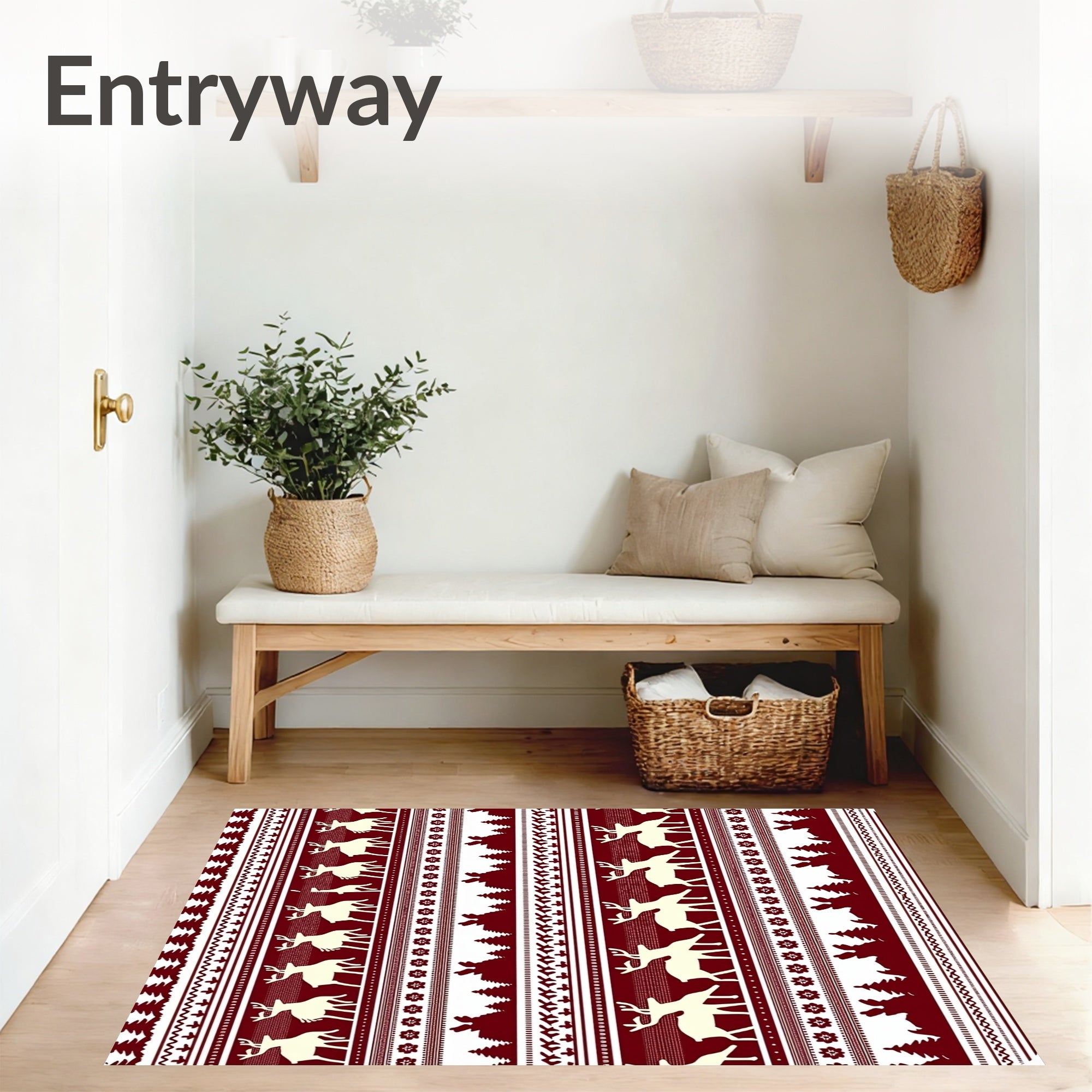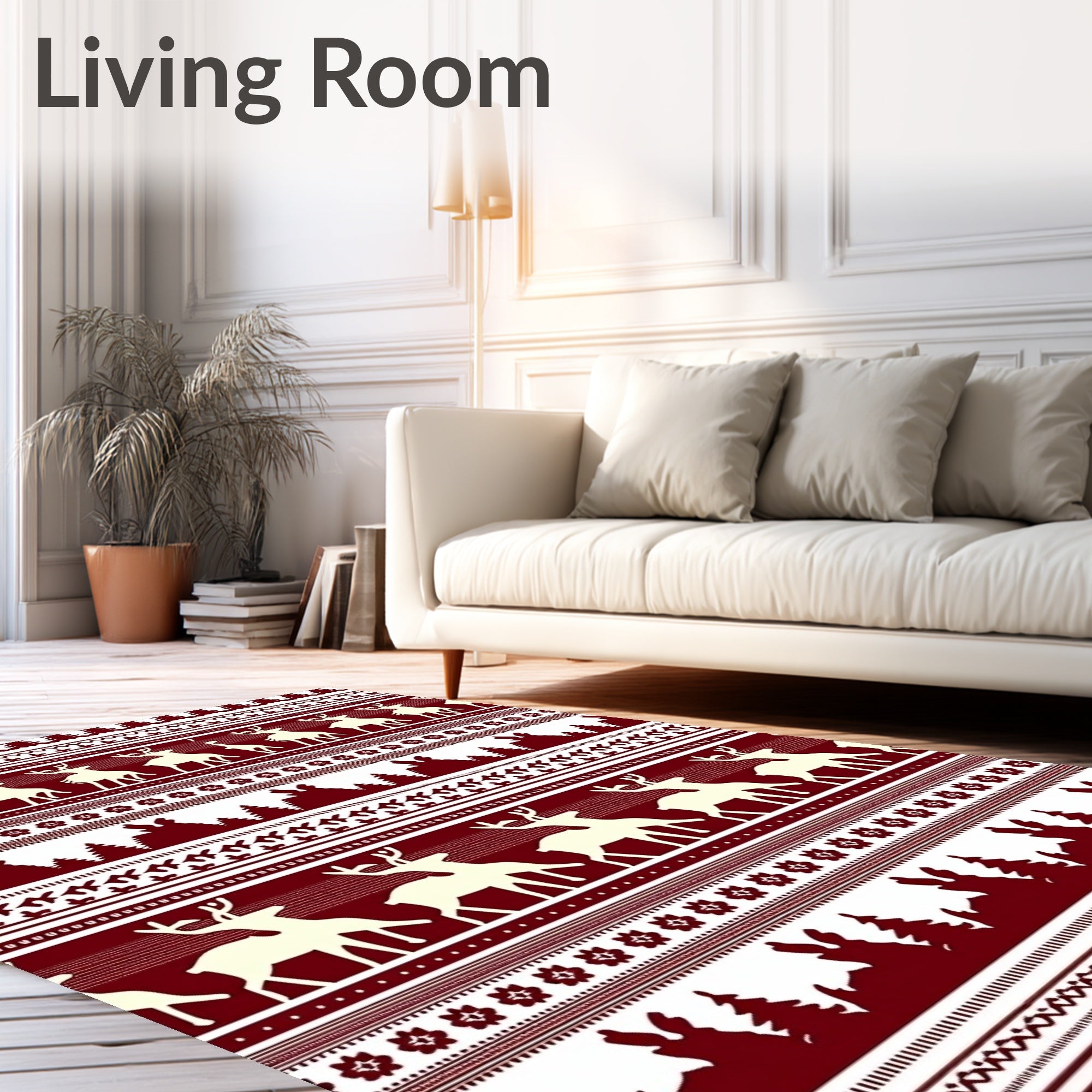 Ultra Soft Area Rug, Non Slip, Stain Resistant, Washable Area Rugs for Living Room, Bedroom, Reindeer Xmas Area with Nordic Forest(Brown) Overview: