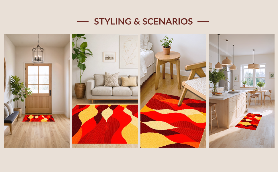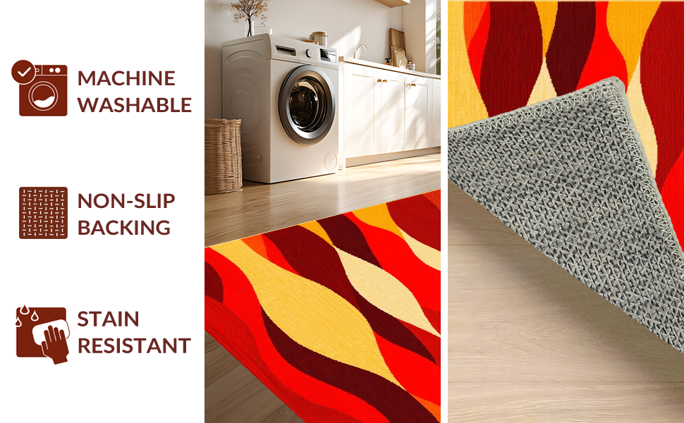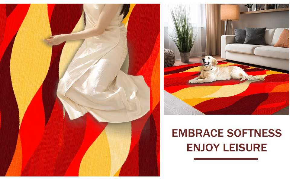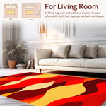 Ultra Soft Area Rug, Non Slip, Stain Resistant, Washable Area Rugs for Living Room, Bedroom, Retro Abstract Wave Aesthetics(Red) Overview: