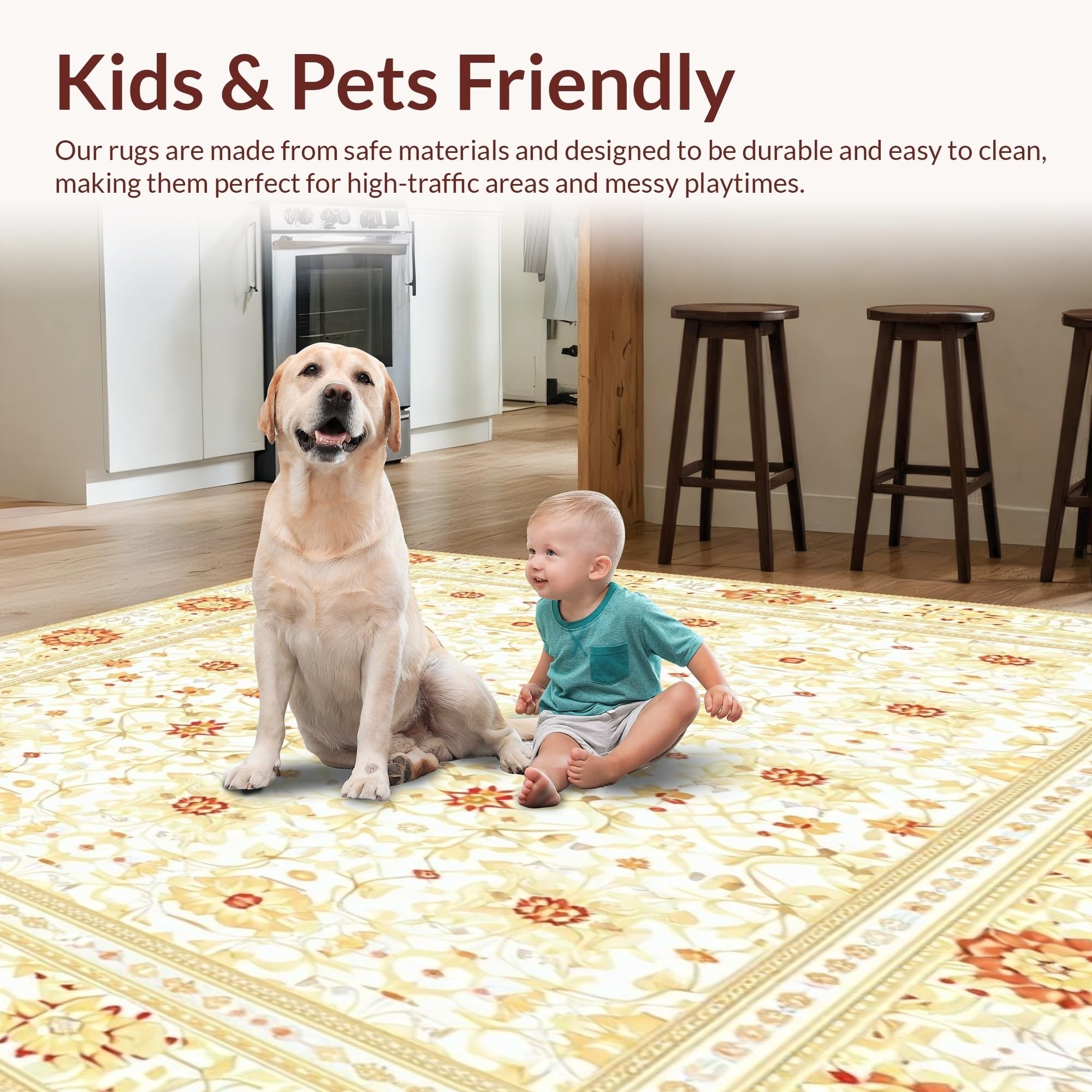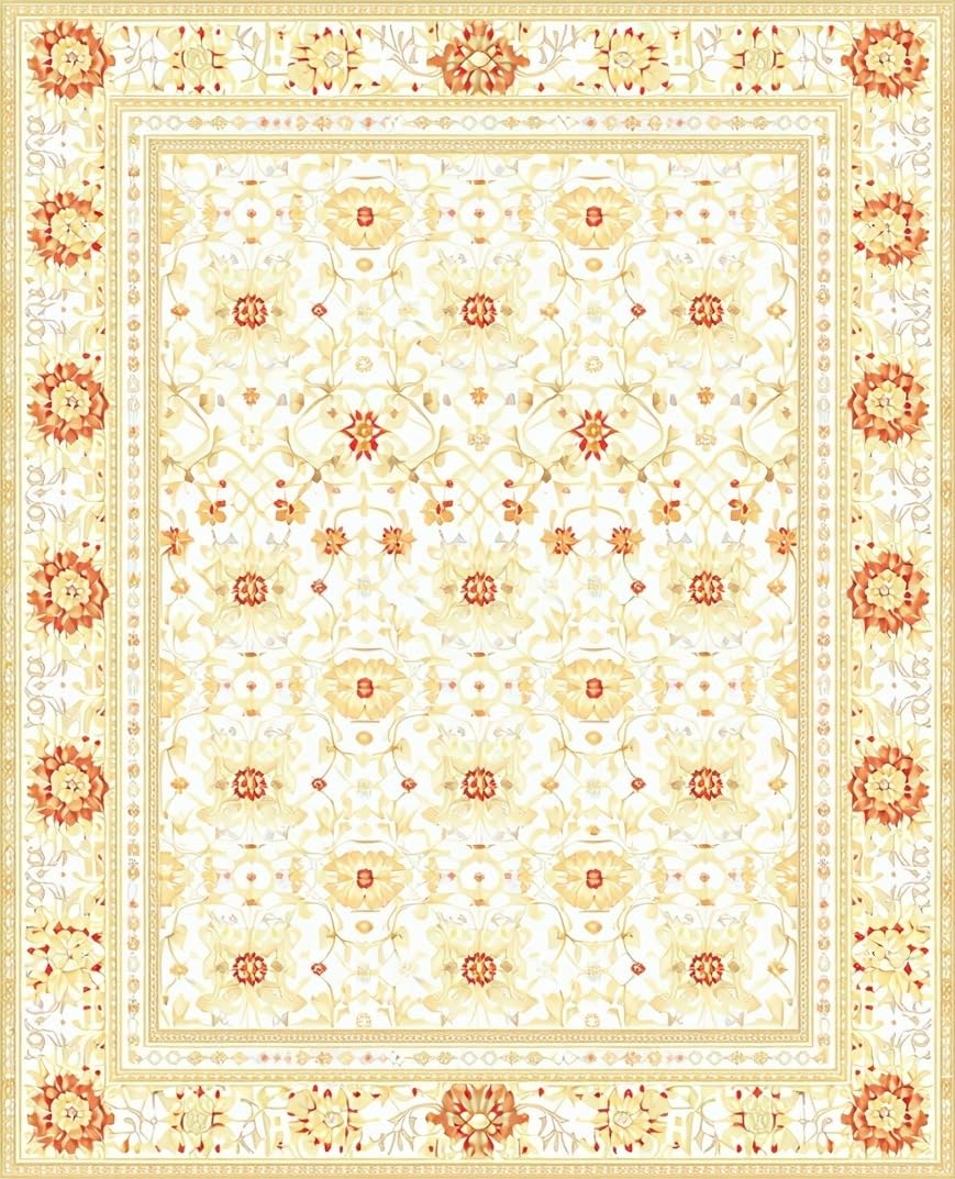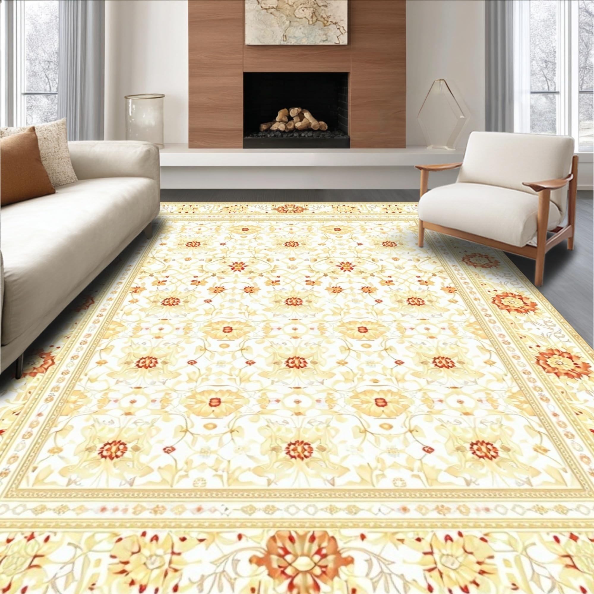 Ultra Soft Area Rug, Non Slip, Stain Resistant, Washable Area Rugs for Living Room, Bedroom, Retro Beige Geometric and Floral Fusion Design(Beige) Overview: