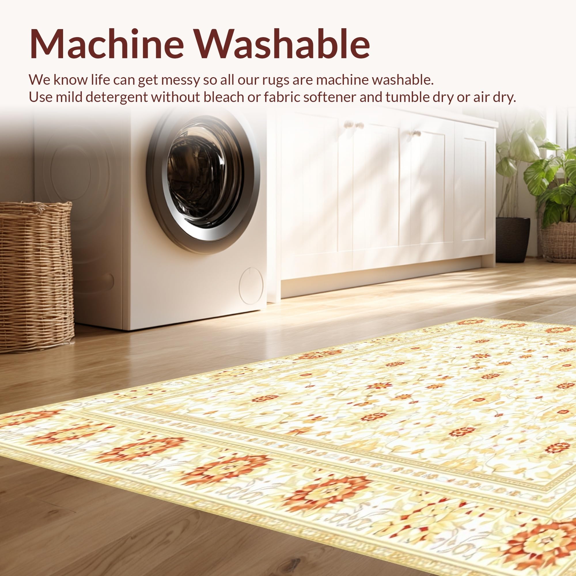 - Machine Washable: Our rugs can be easily thrown in the wash machine.