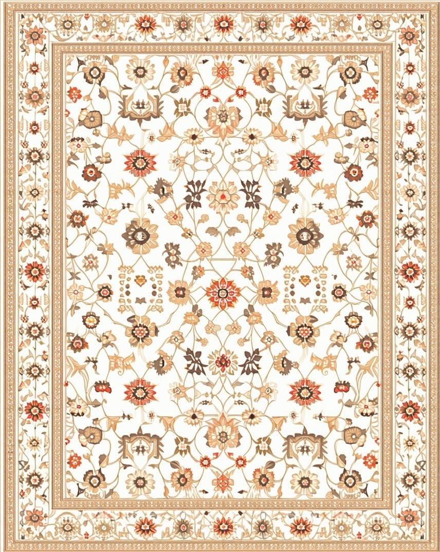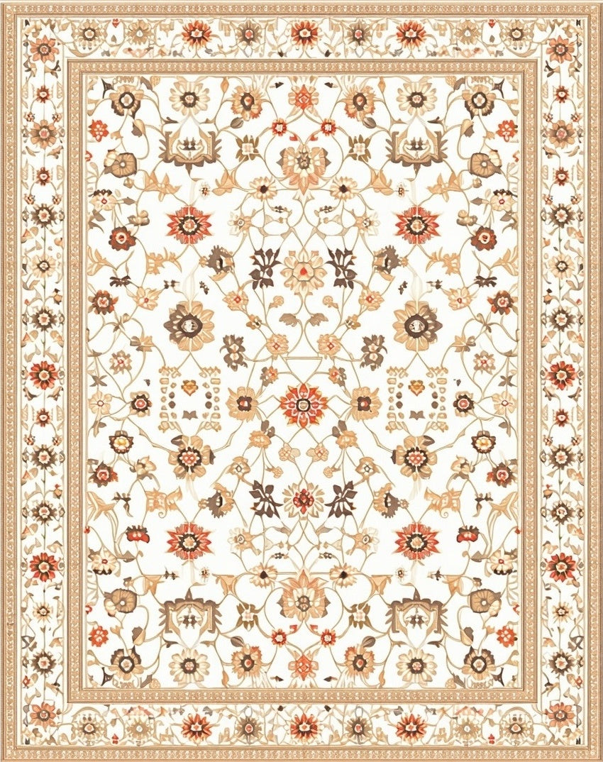 Retro Beige Low Pile Intricate Floral Motifs(Ivory)