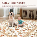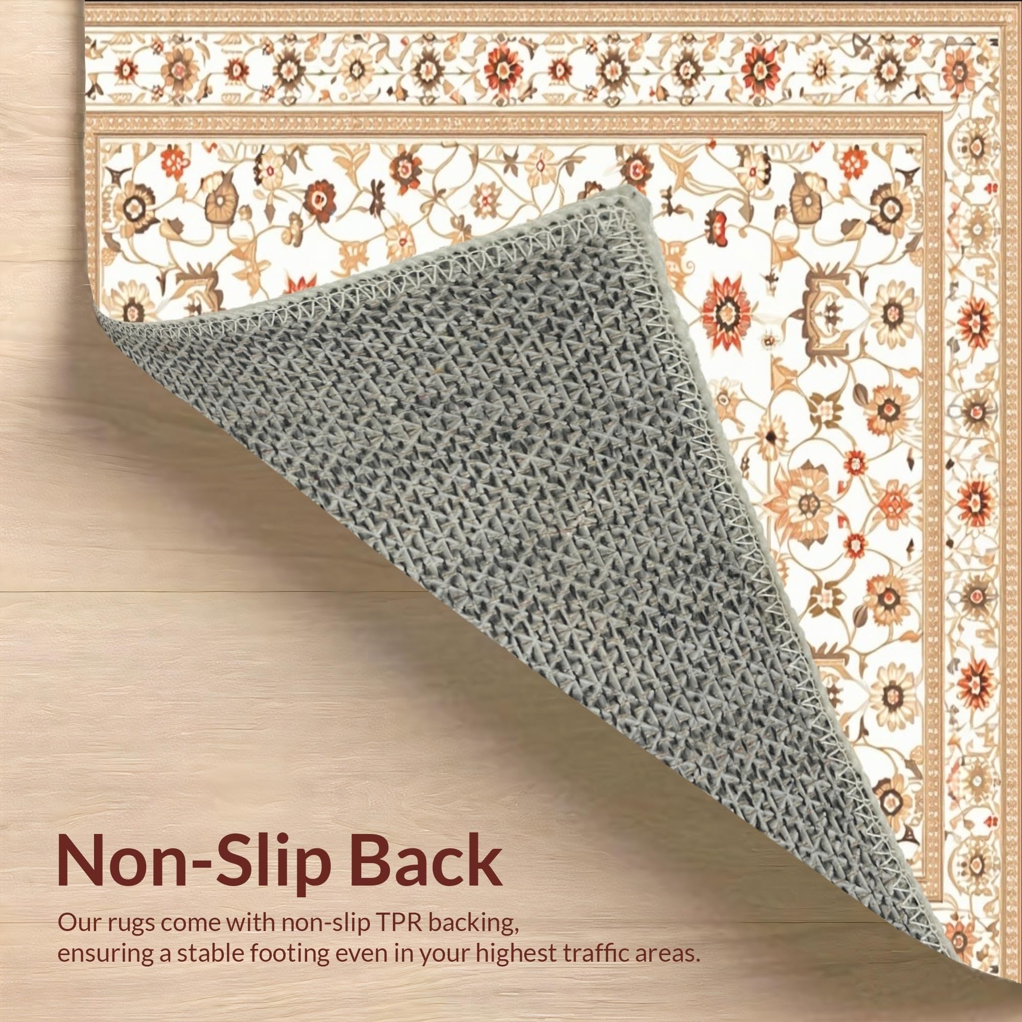 Ultra Soft Area Rug, Non Slip, Stain Resistant, Washable Area Rugs for Living Room, Bedroom, Retro Beige Low Pile Intricate Floral Motifs(Ivory) Overview:
