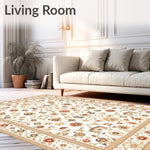 Flatwoven High Traffic Area Rug, Retro Beige Low Pile Intricate Floral Motifs, Non Slip, Stain Resistant, Washable Area Rugs for Living Room, Bedroom (Ivory) Overview: