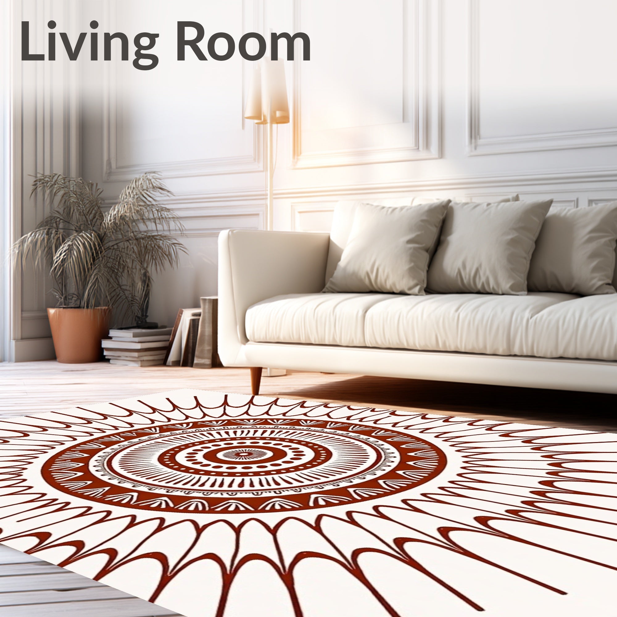 Flatwoven High Traffic Area Rug, Retro Boho Ornamental Sunburst Filigree Design, Non Slip, Stain Resistant, Washable Area Rugs for Living Room, Bedroom (Brown) Overview: