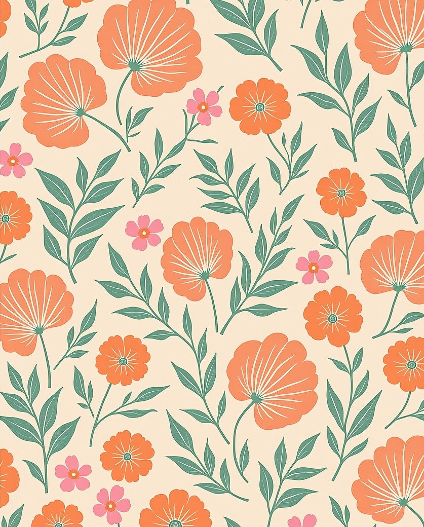 Retro Botanical Garden Artistic Print Elegant(Orange)
