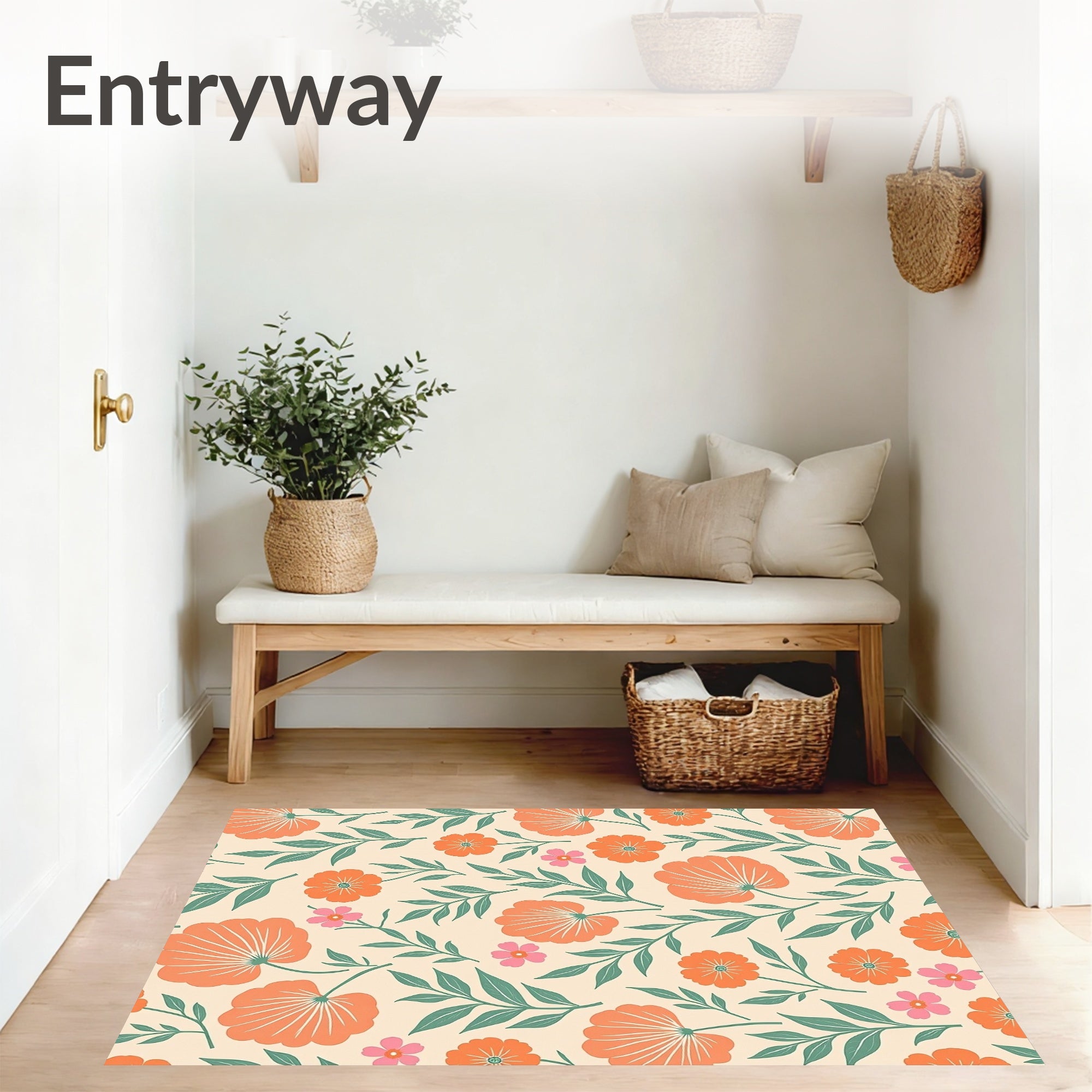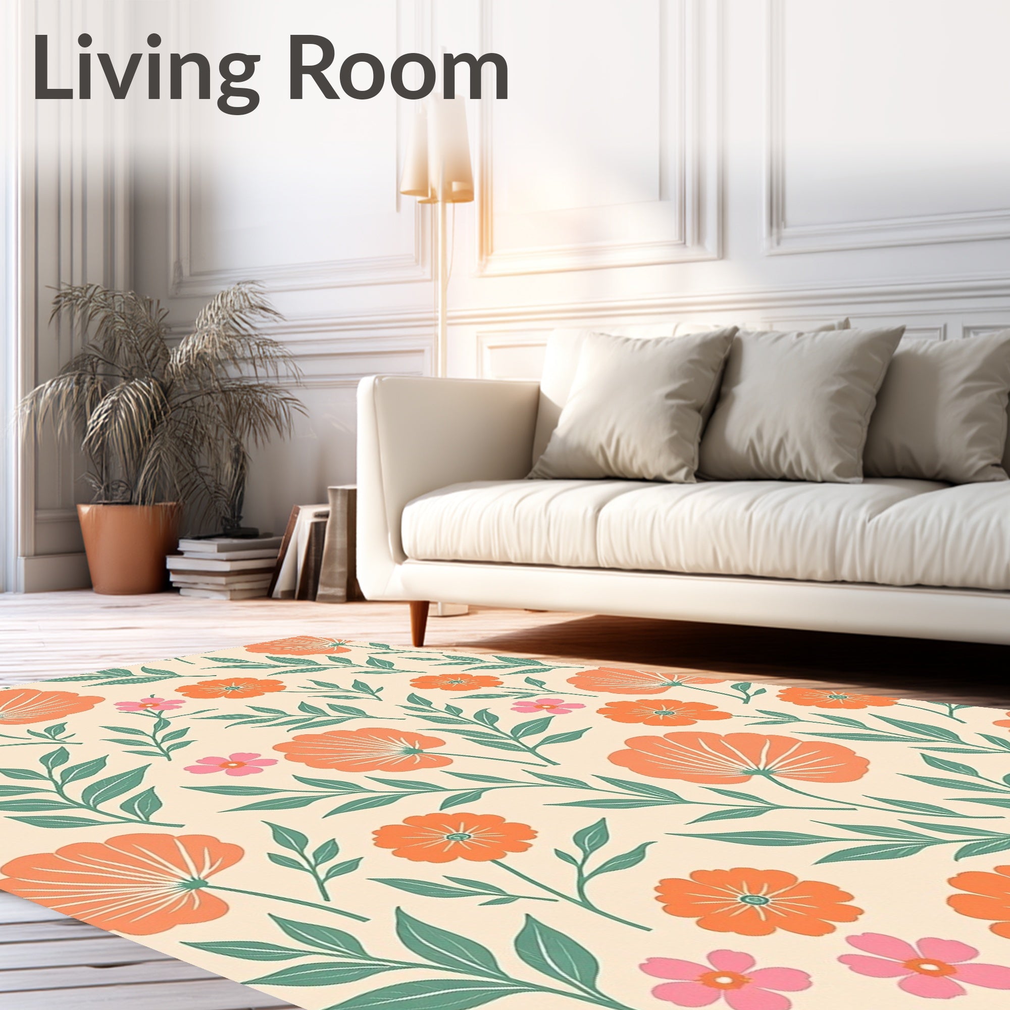Ultra Soft Area Rug, Non Slip, Stain Resistant, Washable Area Rugs for Living Room, Bedroom, Retro Botanical Garden Artistic Print Elegant(Orange) Overview: