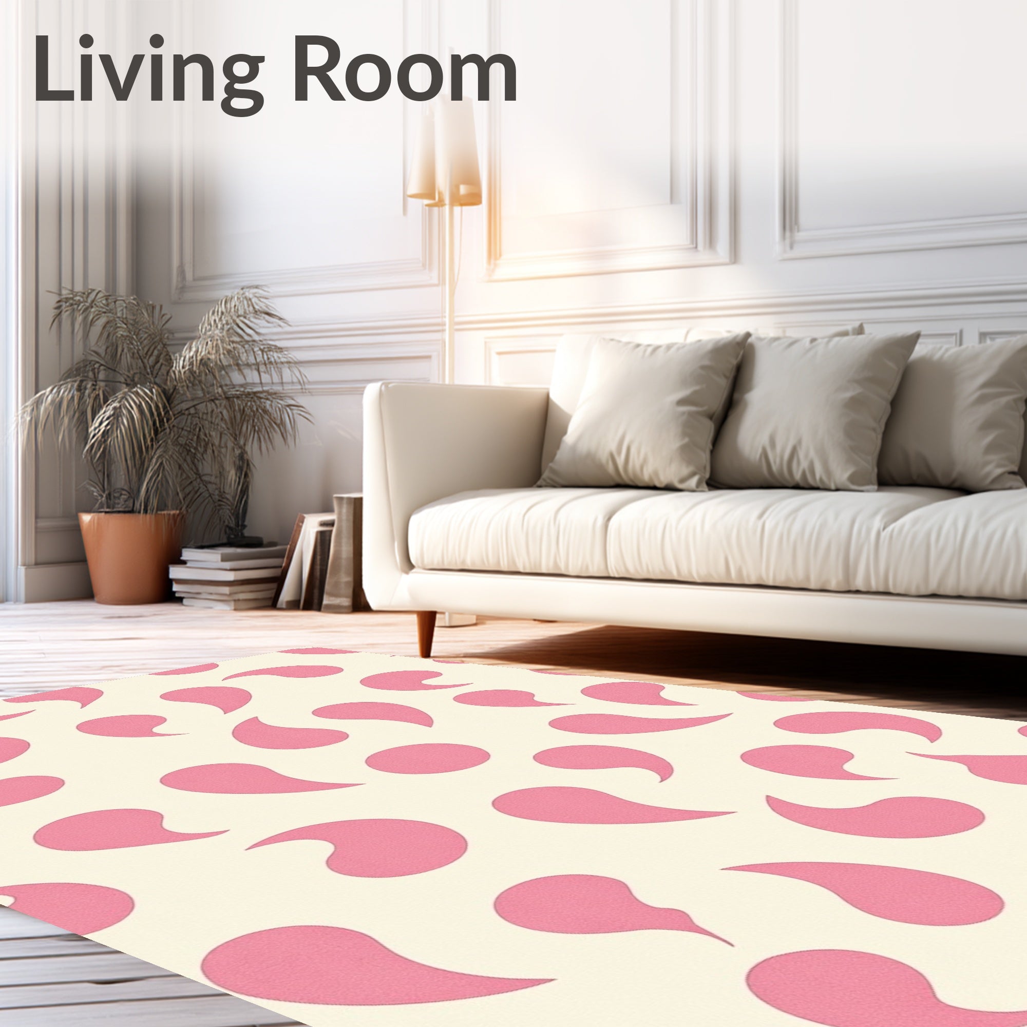 Ultra Soft Area Rug, Non Slip, Stain Resistant, Washable Area Rugs for Living Room, Bedroom, Retro Curved Motif Abstract Minimalist Decorative Floor Covering(Pink) Overview: