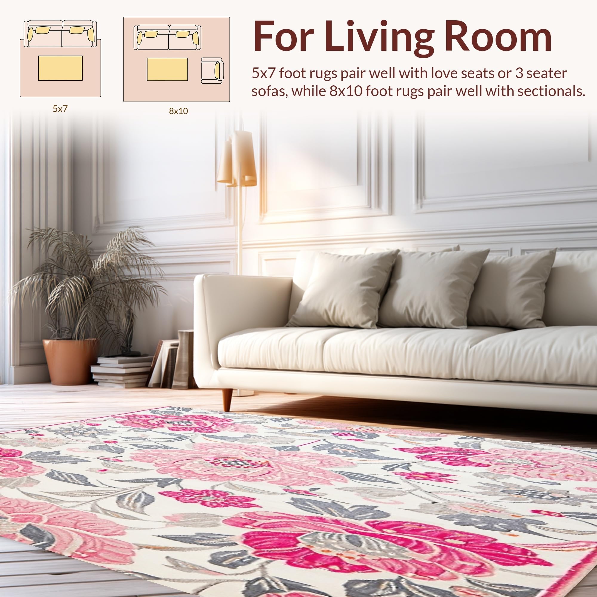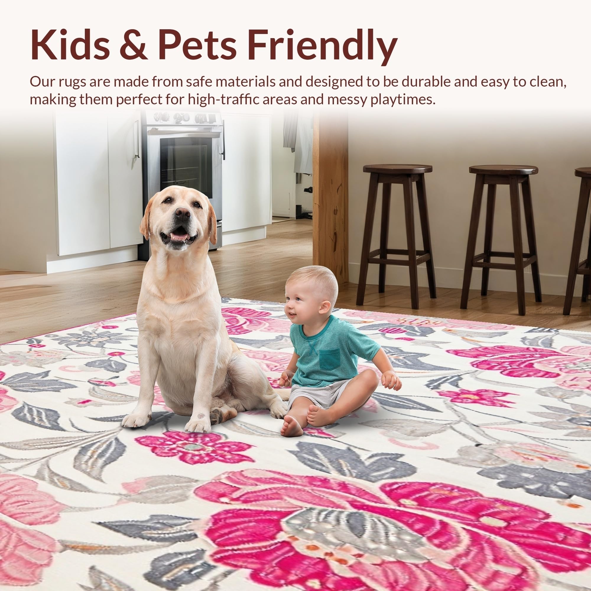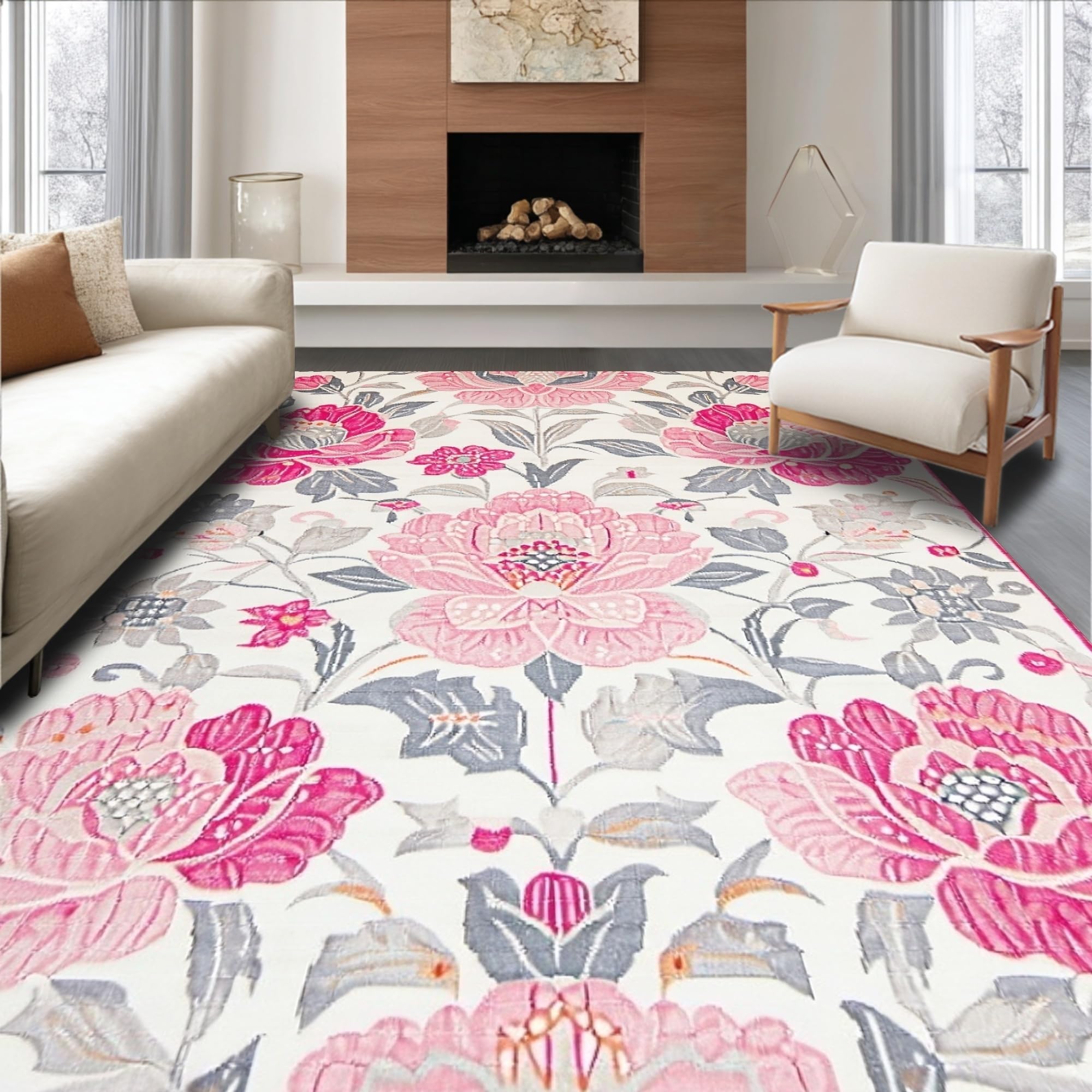 Ultra Soft Area Rug, Non Slip, Stain Resistant, Washable Area Rugs for Living Room, Bedroom, Retro Design Doormat Non Slip Floral(White) Overview: