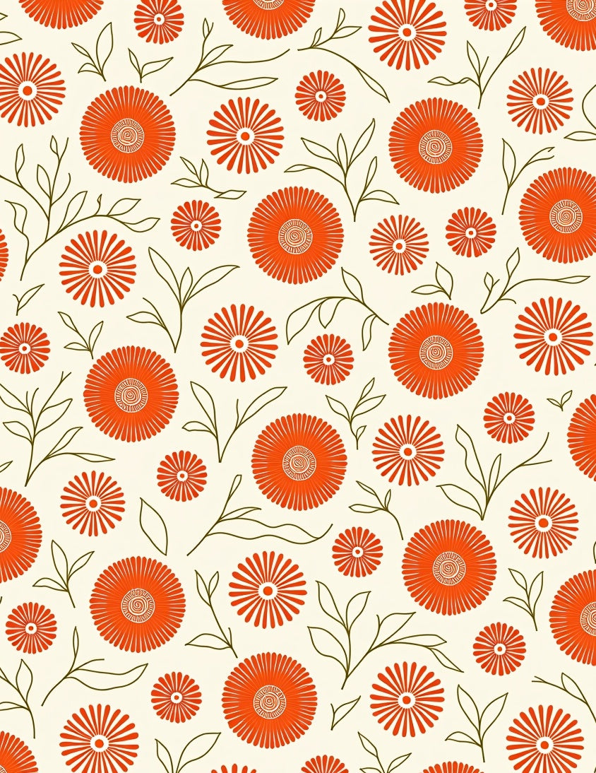 Retro Floral Cascade Interlocking Motif Accent(Orange)