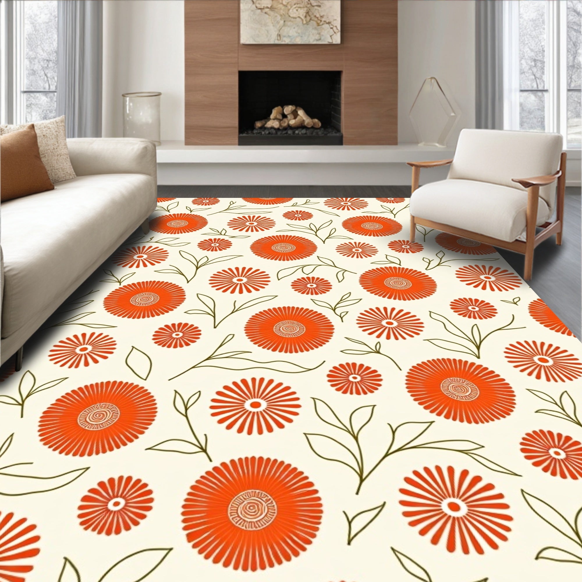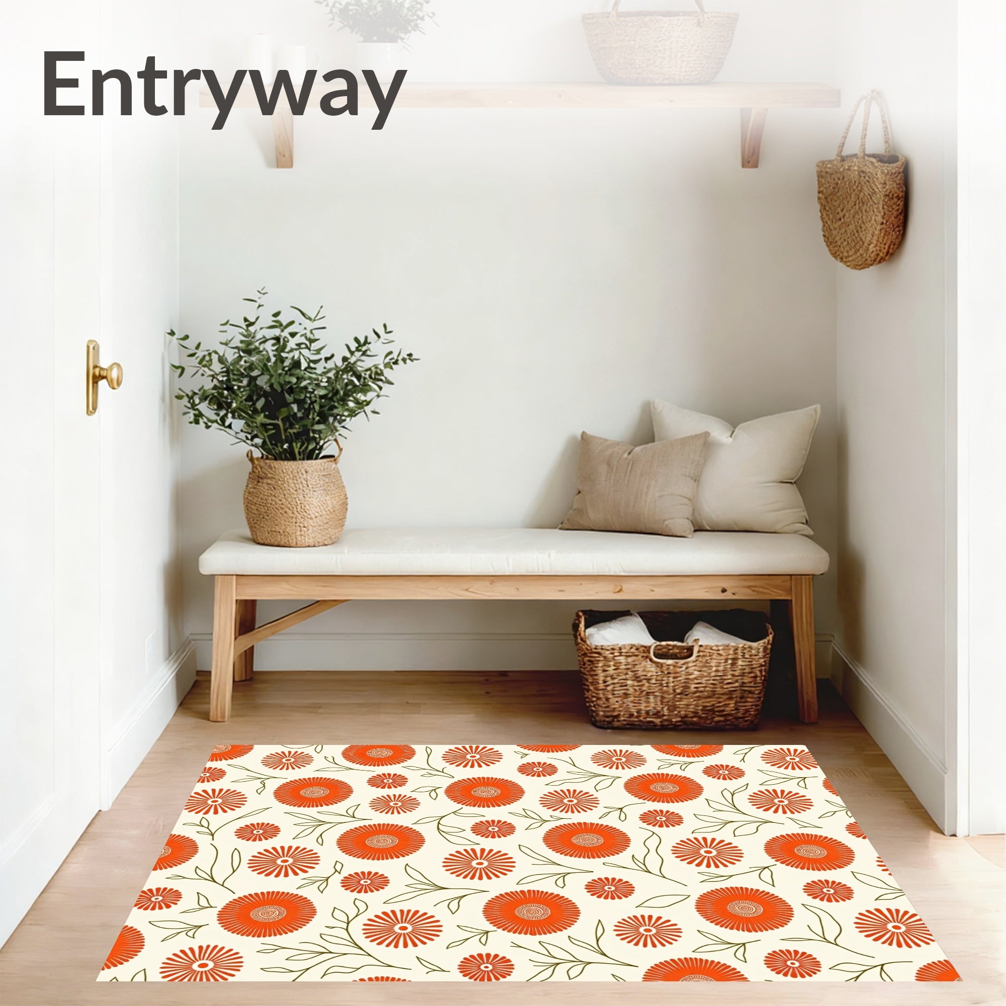 Flatwoven High Traffic Area Rug, Retro Floral Cascade Interlocking Motif Accent, Non Slip, Stain Resistant, Washable Area Rugs for Living Room, Bedroom (Orange) Overview:
