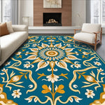 Ultra Soft Area Rug, Non Slip, Stain Resistant, Washable Area Rugs for Living Room, Bedroom, Retro Floral Medallion Motif with Distressed Ornate Botanical Detailing(Blue) Overview: