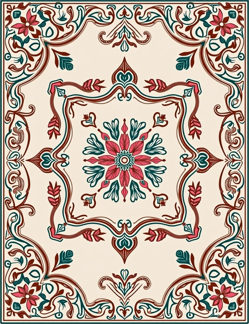 Retro Floral Medallion with Interlocking Vine Filigree(Ivory)