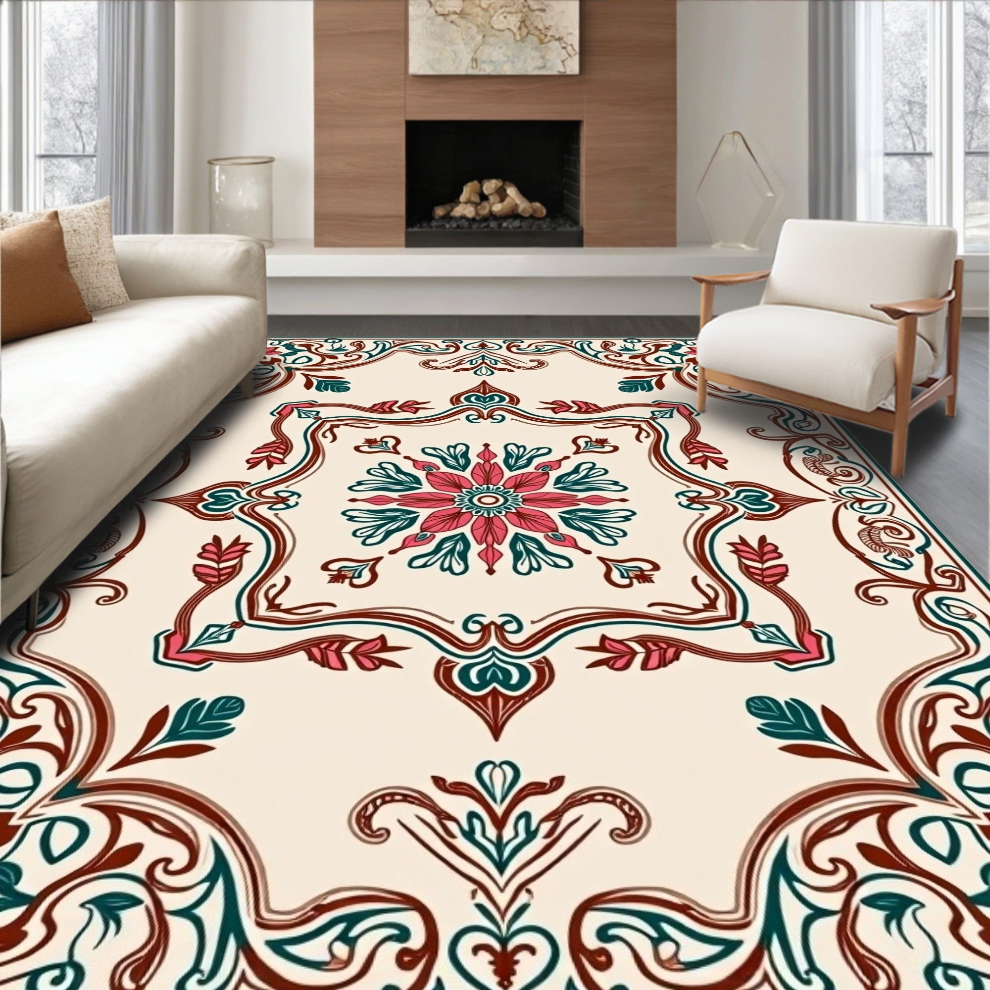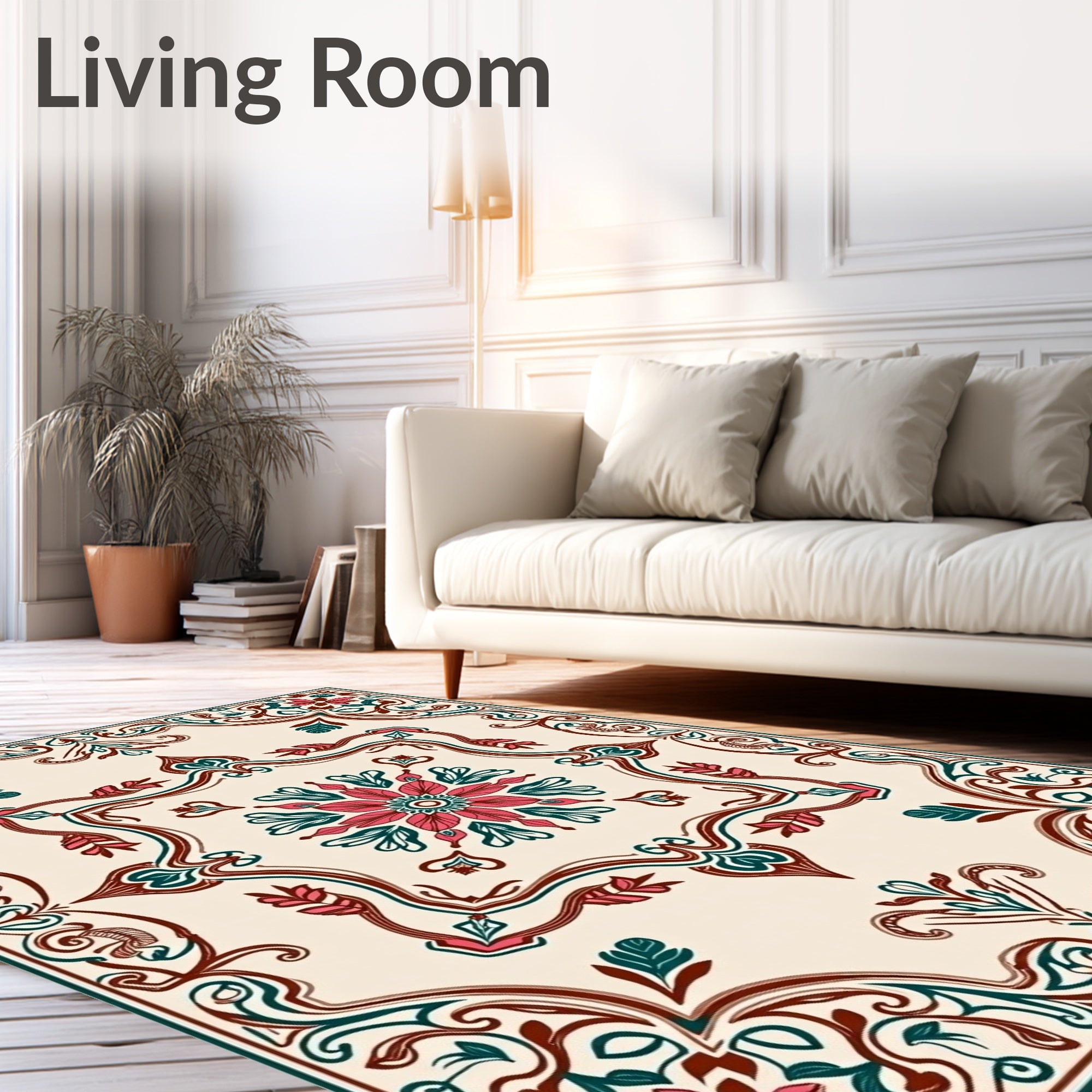 Flatwoven High Traffic Area Rug, Retro Floral Medallion with Interlocking Vine Filigree, Non Slip, Stain Resistant, Washable Area Rugs for Living Room, Bedroom (Ivory) Overview: