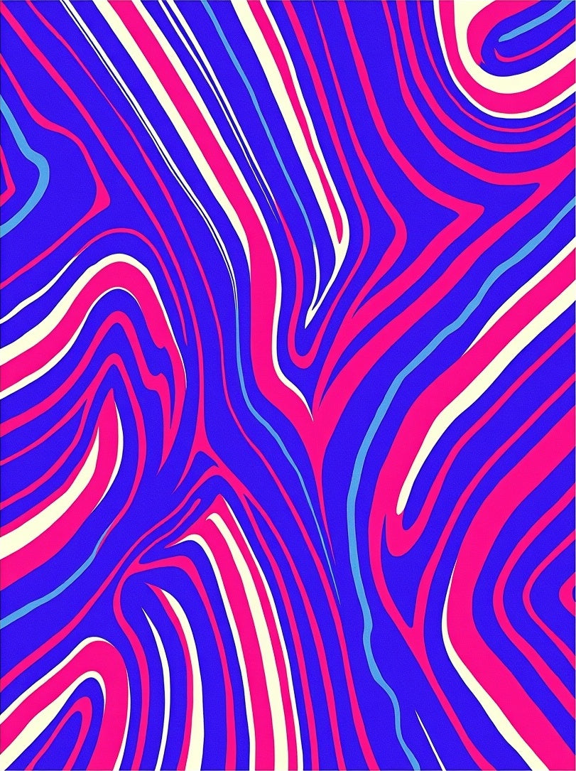 Retro Interlocking Wave Motif with Asymmetric Striped Detailing(Blue)