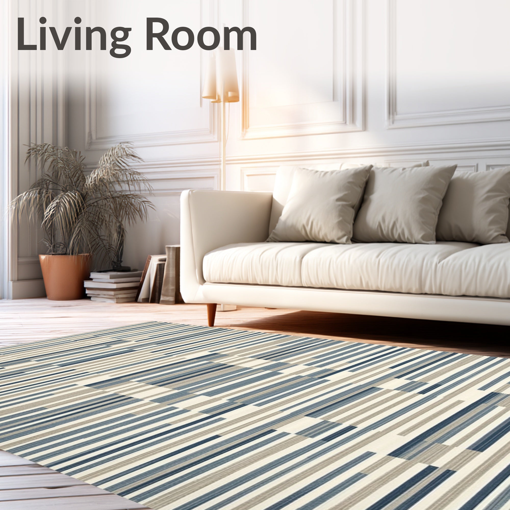 Ultra Soft Area Rug, Non Slip, Stain Resistant, Washable Area Rugs for Living Room, Bedroom, Retro Linear Accent Area with Dual Tone Striped Graphic(Beige) Overview: