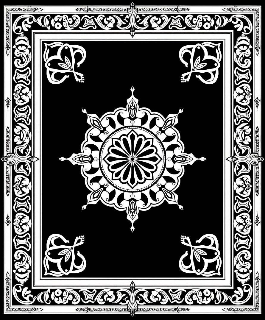 Retro Medallion Interlocking Motif with Stylized Scrollwork Accents(Black)